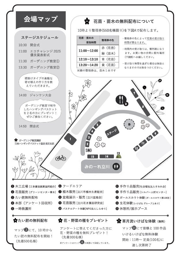 大人気の花苗・苗木の無料配布は、550名様にプレゼント。恒例のたい肥の配布も行います。