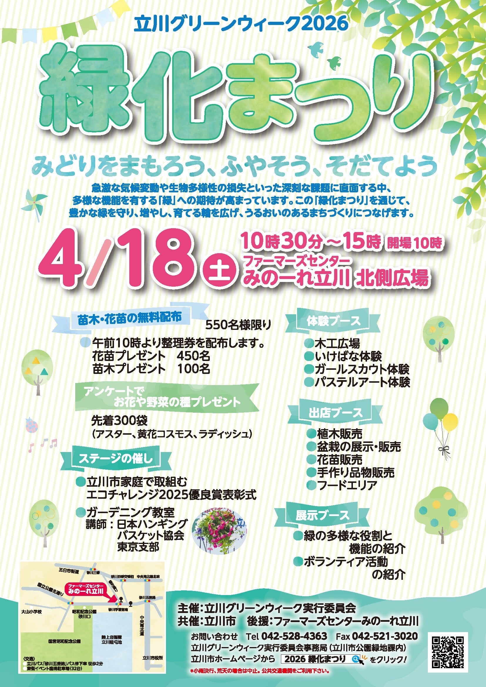 立川グリーンウィーク2026緑化まつり -4月18日(土)に開催
