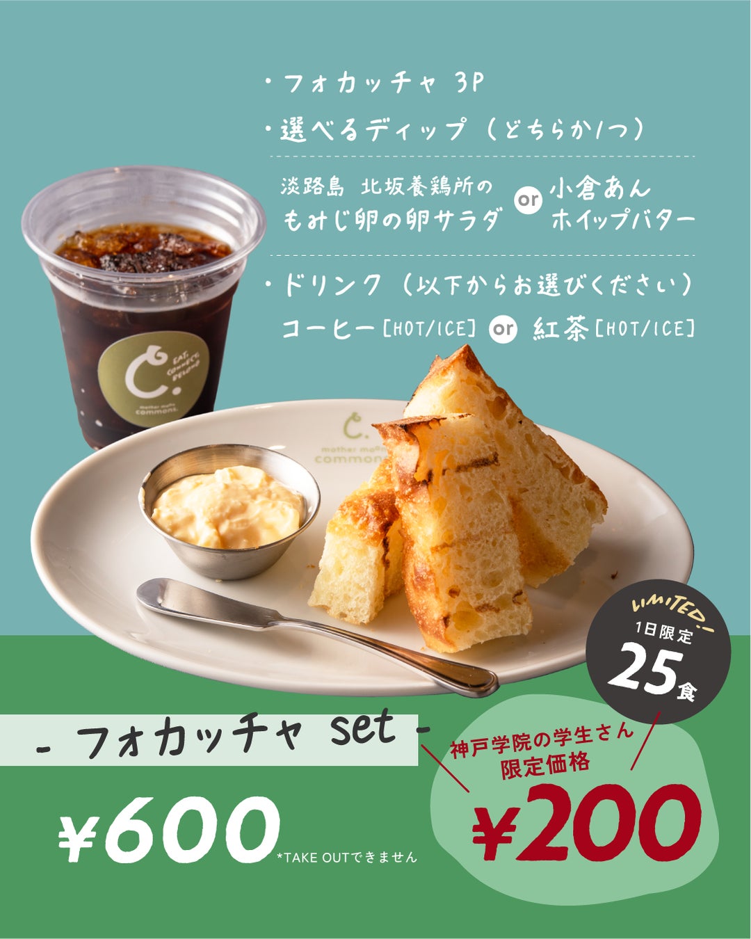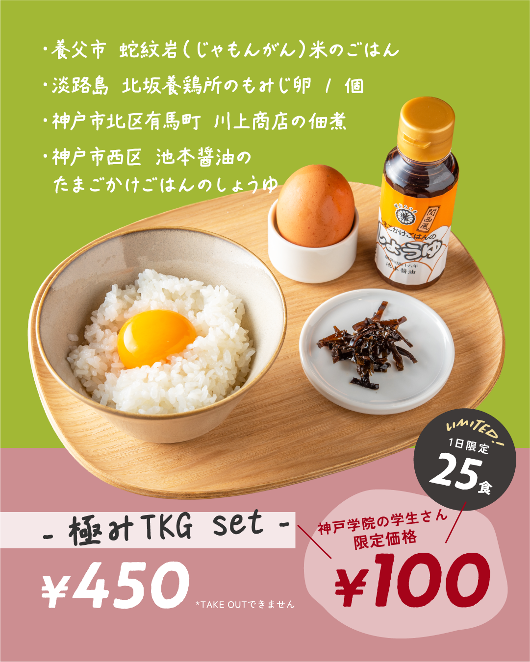 さらに、神戸学院大学の学生を対象に「100円朝食」を提供し、日々の健康的な学生生活を食の面からサポートします。
