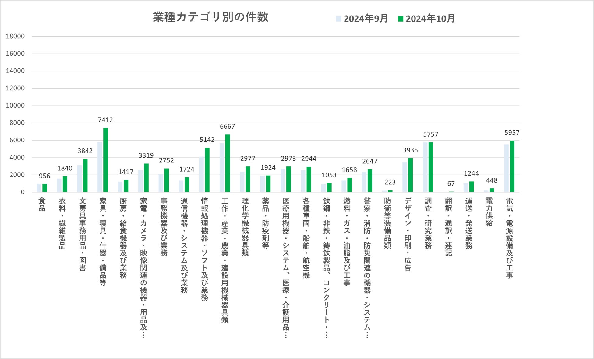 業種別に見る2024年10月の入札・公募案件数。注目の動きを分析します。