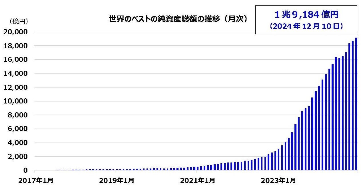 インベスコ・アセット・マネジメント株式会社(代表取締役社長兼CEO:佐藤秀樹、所在地:東京都港区)は同社が運用する公募追加型投資信託「世界のベスト」*1の2024年12月10日の運用資産残高が、6ファンド合計で1兆9,000億円を達成し、1兆9,184億円になったことを発表いたします*2。