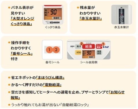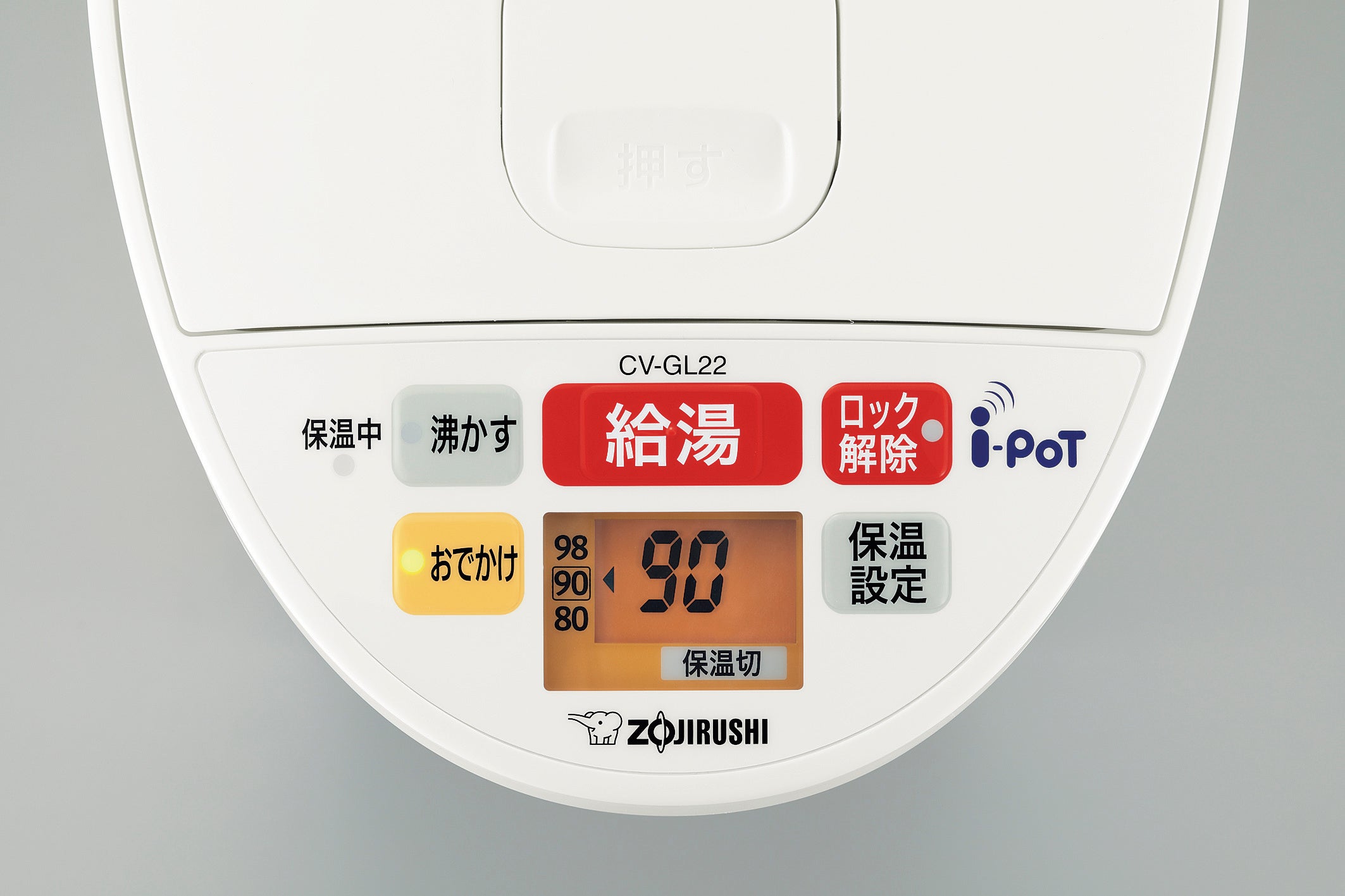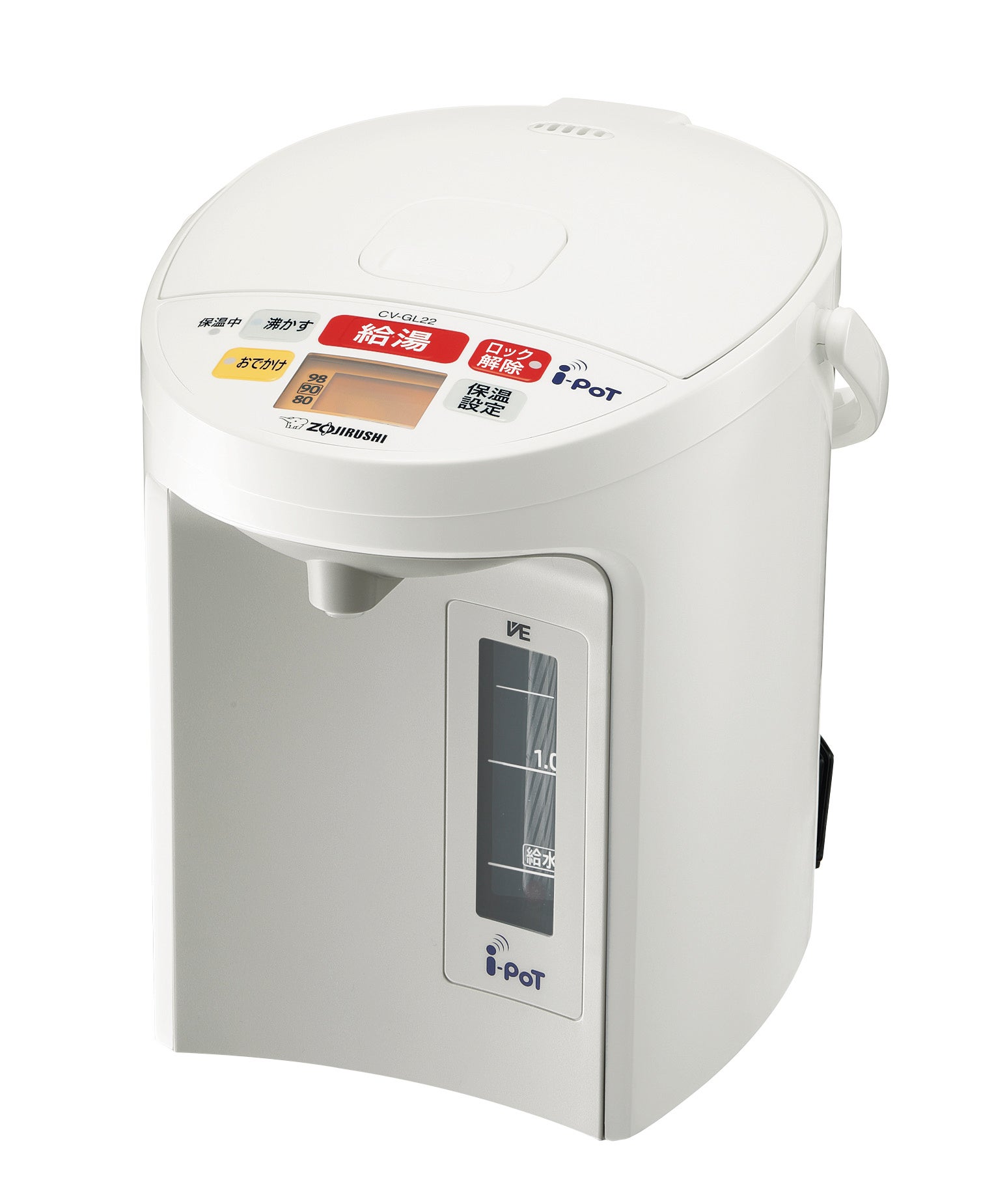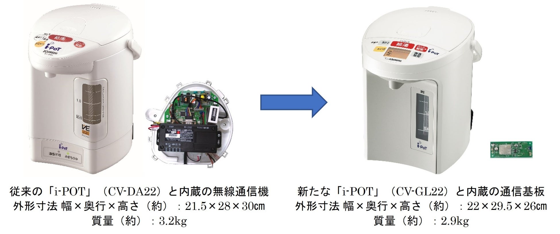 内蔵される通信機のサイズが小さくなったことにより、電気ポットのモデルを変更。従来の容量2.2Lはそのままに、従来モデルよりも本体が軽く、小さくなりました。