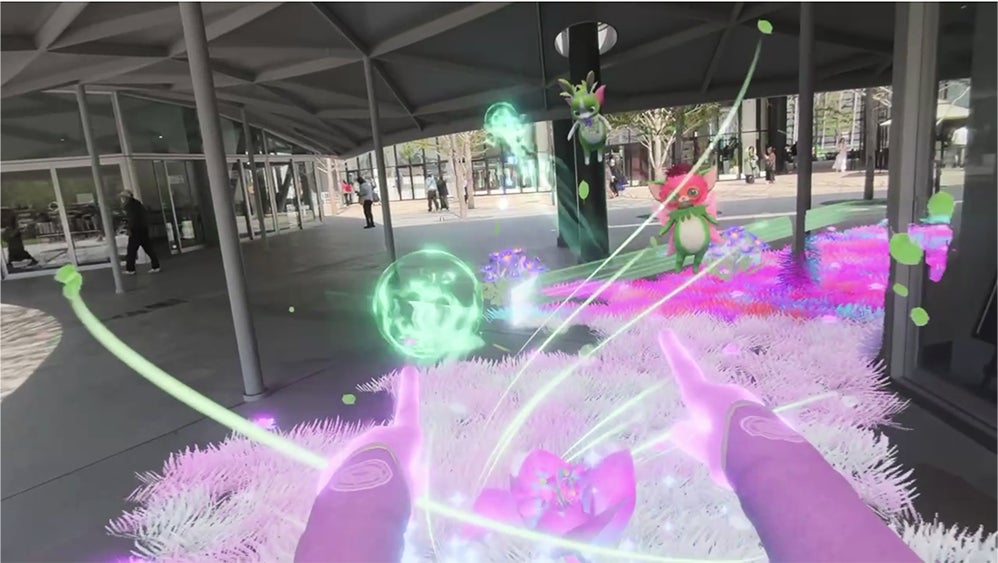 第一弾の体験コンテンツとして、まるで自分が魔法を使っているかのようにうめきた公園の周囲の風景を幻想的な花と不思議な生き物たちで彩っていく、新しい空間エンターテインメント体験「Enchantry(エンチャントリー)」をお楽しみいただけます。