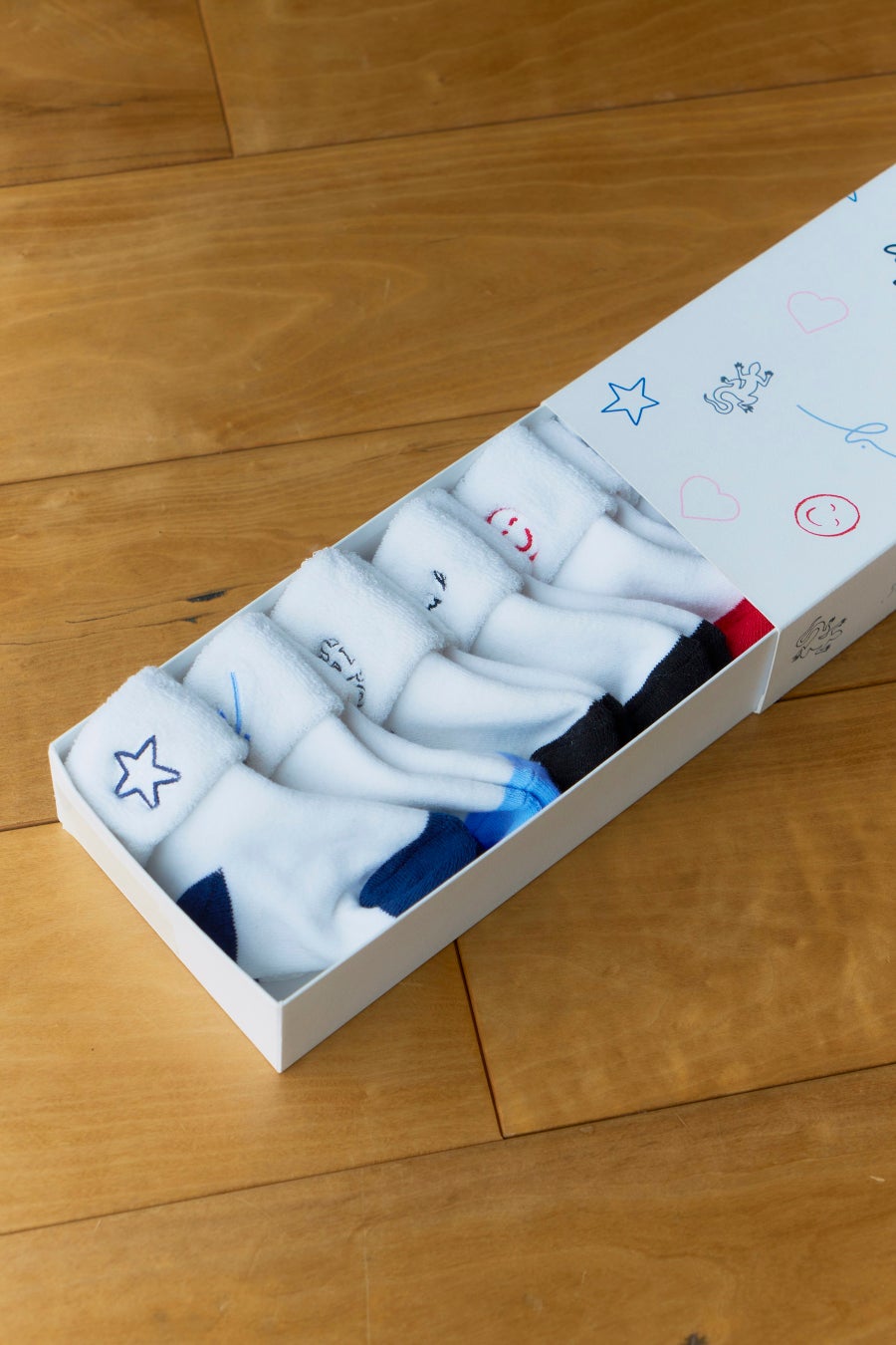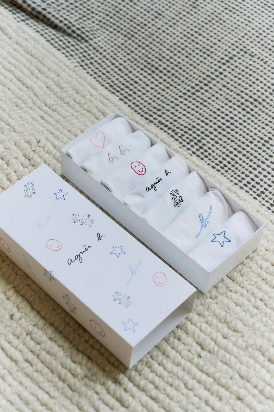 また、新たに1週間を毎日楽しく過ごせるようにとの思いを込めた「1,2,...7!」シリーズが登場。カラーや刺繍アイコンが異なるスタイのセットとソックスのセットを発売します。ユニークな引き出し型デザインのパッケージは、そのまま収納ボックスとしても使用できます。