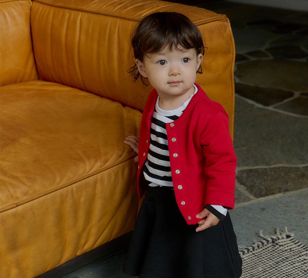 アニエスベーのカーディガンプレッションは、「大人のための子ども服」を作ろうとアニエスがスウェットを前開きにしてデザインしたもの。ブランドの代名詞ともいえるボーダーなどベビーアイテムにもアニエスべーのエッセンスが詰め込まれています。肌に優しく、環境にも配慮した上質な素材を使用しており、長くご着用いただくことができるとともに、サイズアウトしたアイテムをご家族やご友人などにバトンタッチしていただけます。
