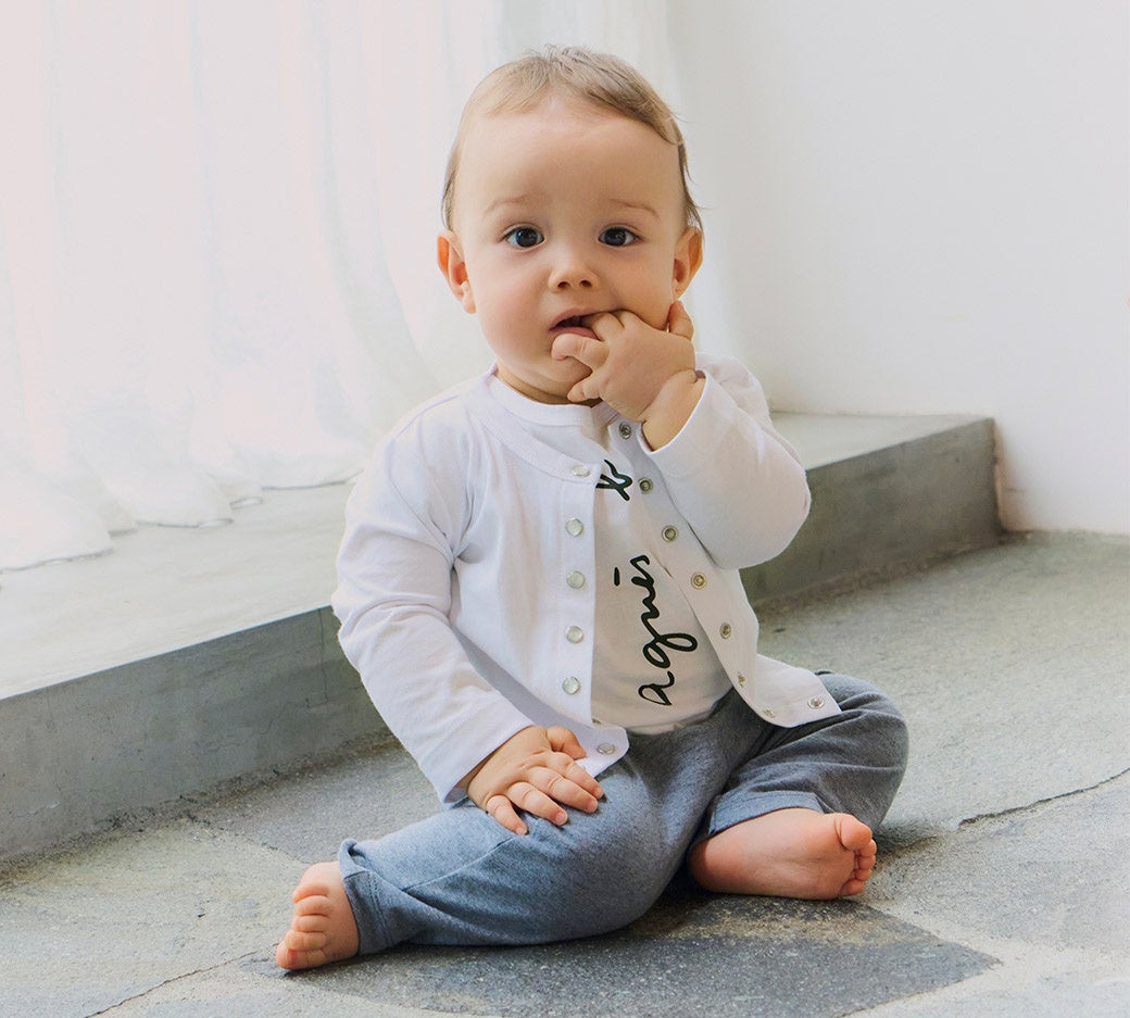 アニエスベー アンファンのベビーアイテムは、パリのコレクションブランドであるアニエスベーらしさはそのままに、優しい肌触りとフィット感で赤ちゃんのデリケートな肌を守ります。赤ちゃんの誕生を祝福するベビーギフトとして、人気アイテムを集めたボックス入りのギフトセットや、アニエスベーのアイコニックなカーディガンプレッションやボーダーTシャツなど大人とおそろいでも着られるアイテムをご紹介します。