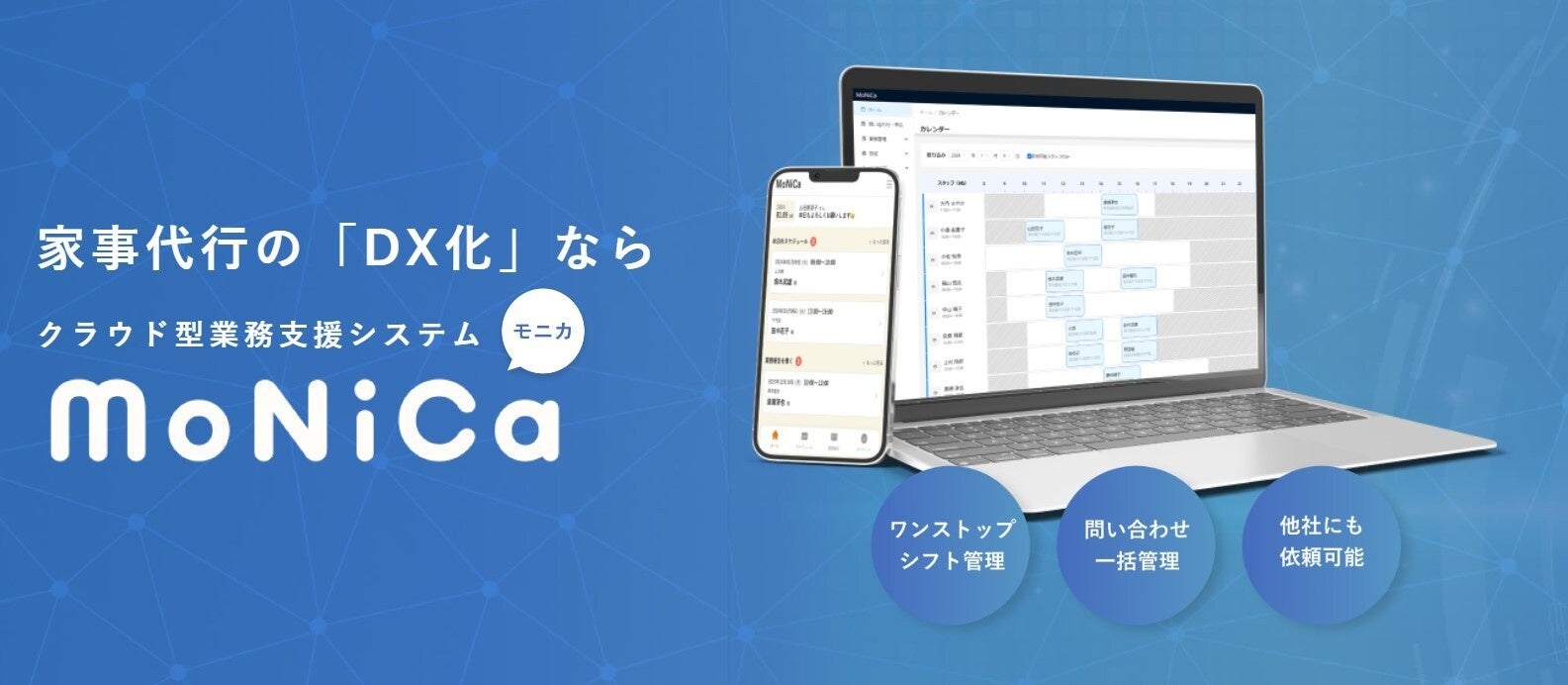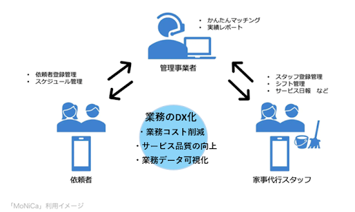 「MoNiCa」は、家事代行業における煩雑な業務をスリム化する仕組みを提供し、事業拡大に寄与します。