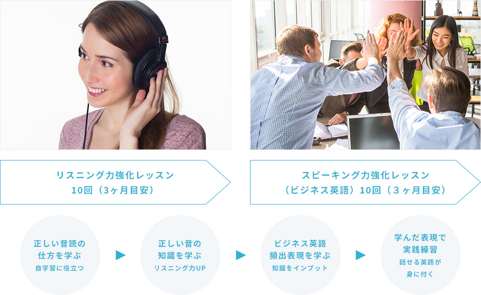 リスニング対策/ビジネス会話の対策プログラムがセットになっており、英語でのコミュニケーションに必要なスキルが体系的に学べるのがポイント。1レッスンは45分みっちり指導。知識や学習方法のインプット、学んだことのアウトプット、さらに先生からのフィードバックもしっかりもらえます。