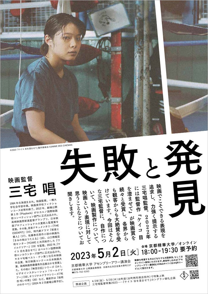5月2日(火)京都精華大学アセンブリーアワー講演会 ゲストに映画監督の三宅 唱さんを迎えて、講演会「失敗と発見」(事前申込制・無料)