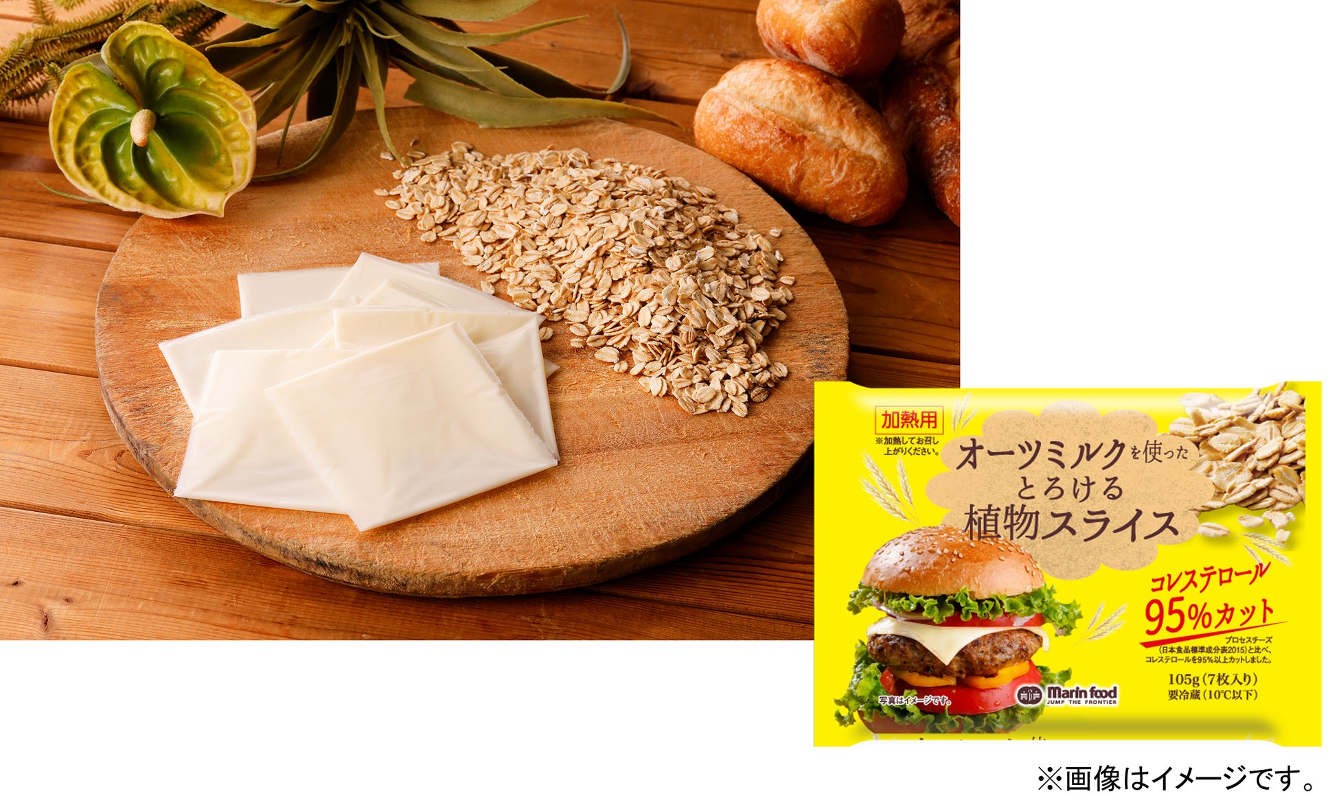 第3のミルクとして大注目のオーツミルクを使用! コレステロール95%オフ※1、ヴィーガン対応のチーズ代替品 「オーツミルクを使ったとろける植物スライス 105g/180g」が新登場