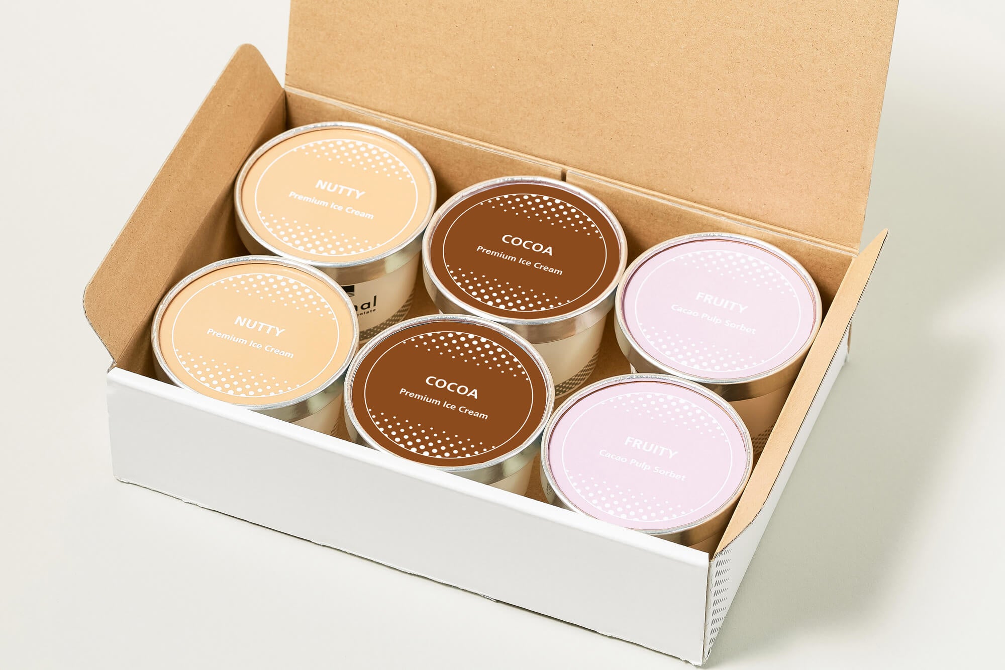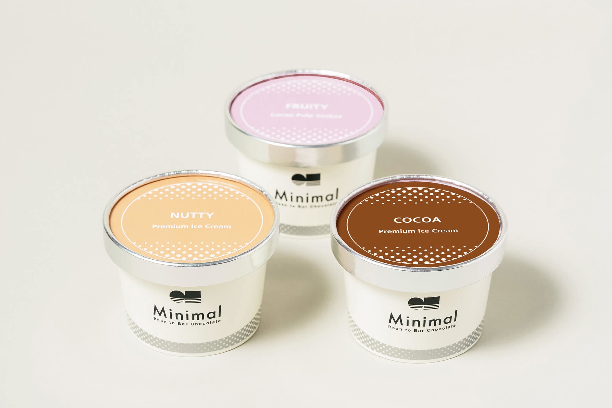 【お中元・夏ギフト】Minimalよりカカオパルプ・ココア・チョコレート、3種を食べ比べる他にはない贅沢セット、スッキリ&濃厚が両方楽しめる「プレミアムアイス3種(6個入)」6/28発売
