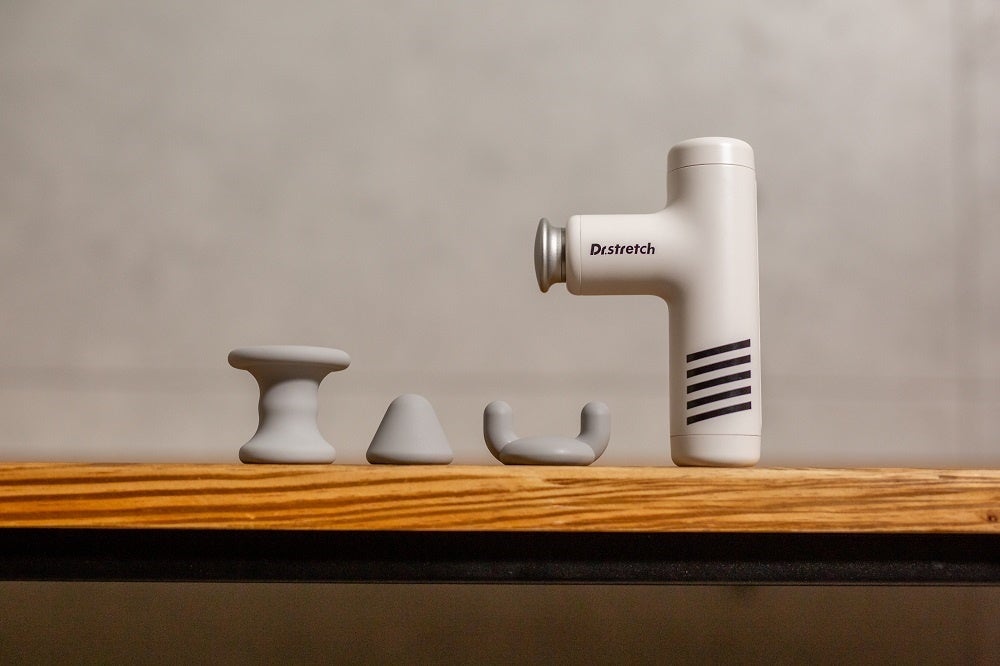 世界200店舗以上で独自技術「コアバランスストレッチ」を提供するストレッチ専門店「Dr.stretch」が監修した本商品は、プロアスリートやスポーツ選手からも支持されるDr.stretchのノウハウを取り入れた実践的な本格モデル。本体に装着させるアタッチメントは、マッサージが難しい肘・肩・膝など骨ばった関節部位をほぐす革新的な【カップ型】をはじめ、痛みやコリが気になる部分をピンポイントでケアする【ポイント型】、デコルテ部分や首筋の胸鎖乳突筋等をほぐす【ダブルヘッド型】の3種類があり、気になる部位に応じてアタッチメントを替えることで的確にアプローチします。