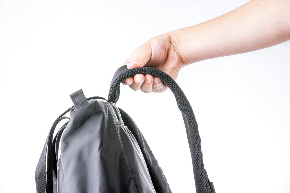 肩ベルトを背中のポケットに収納できるようになっており、トート/リュック仕様に簡単に変えることができます。