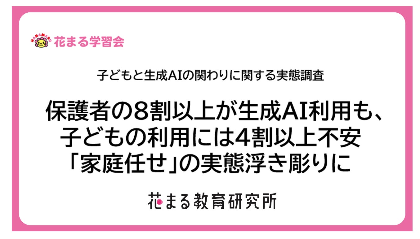 学習塾「花まる学習会」などを展開する花まるグループ(株式会社こうゆう、本社:埼玉県さいたま市、代表:高濱正伸)が運営する「花まる教育研究所」は、保護者268名を対象に「子どもと生成AIの関わりに関する意識調査」を実施しました。