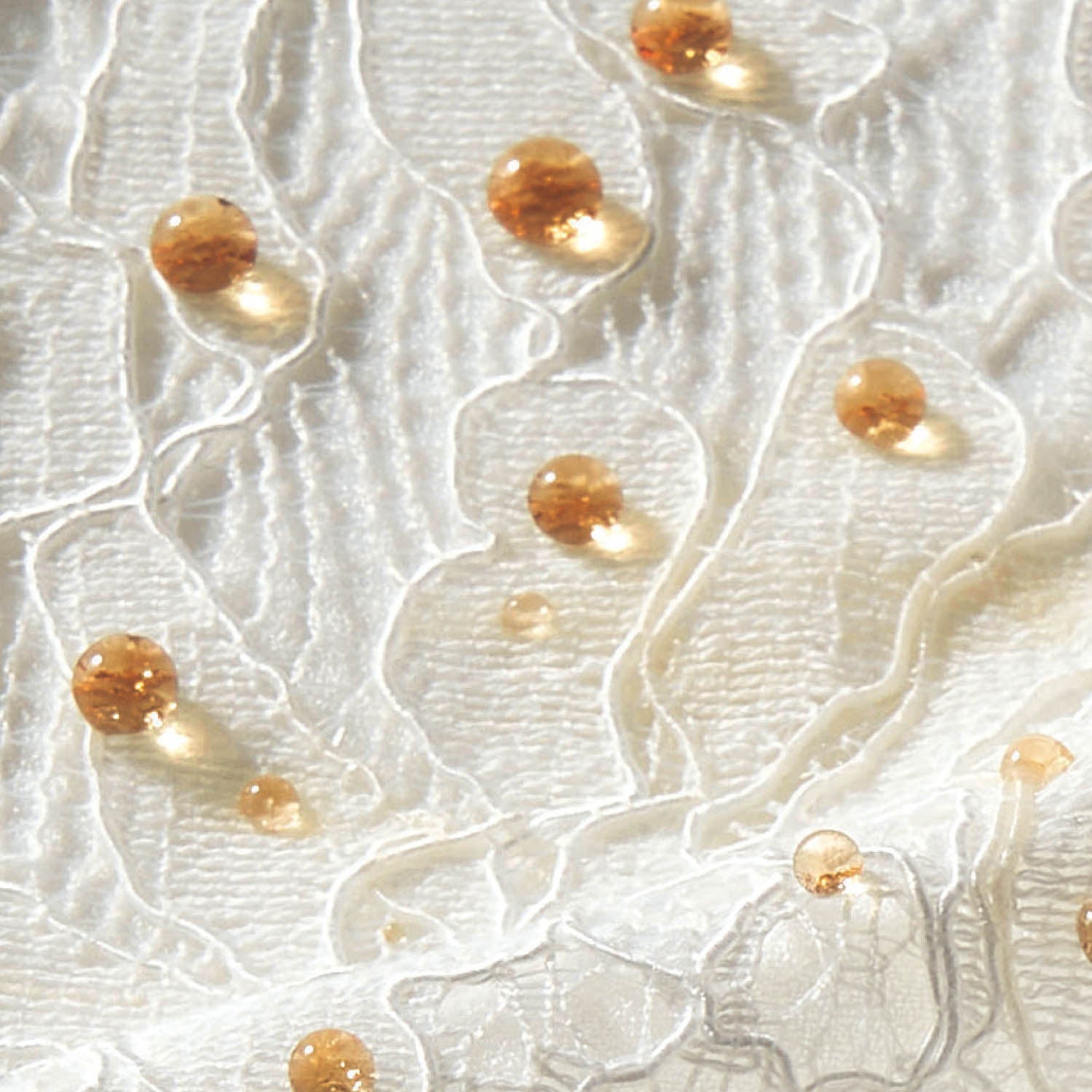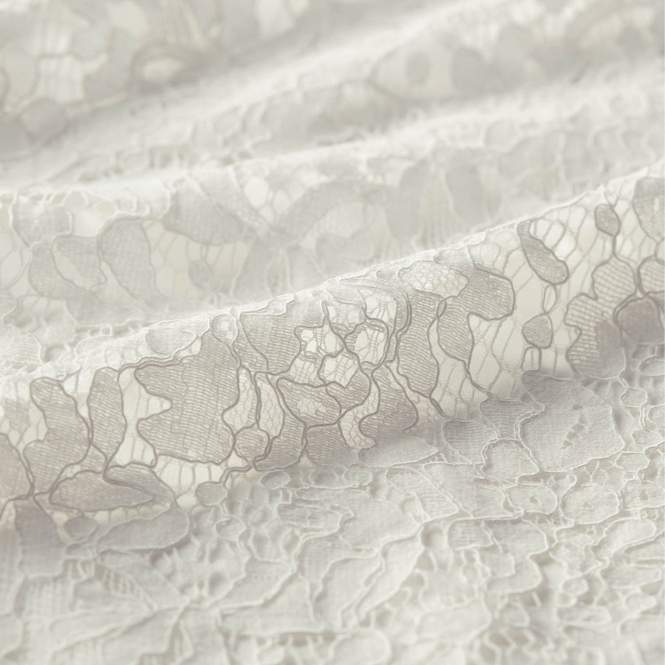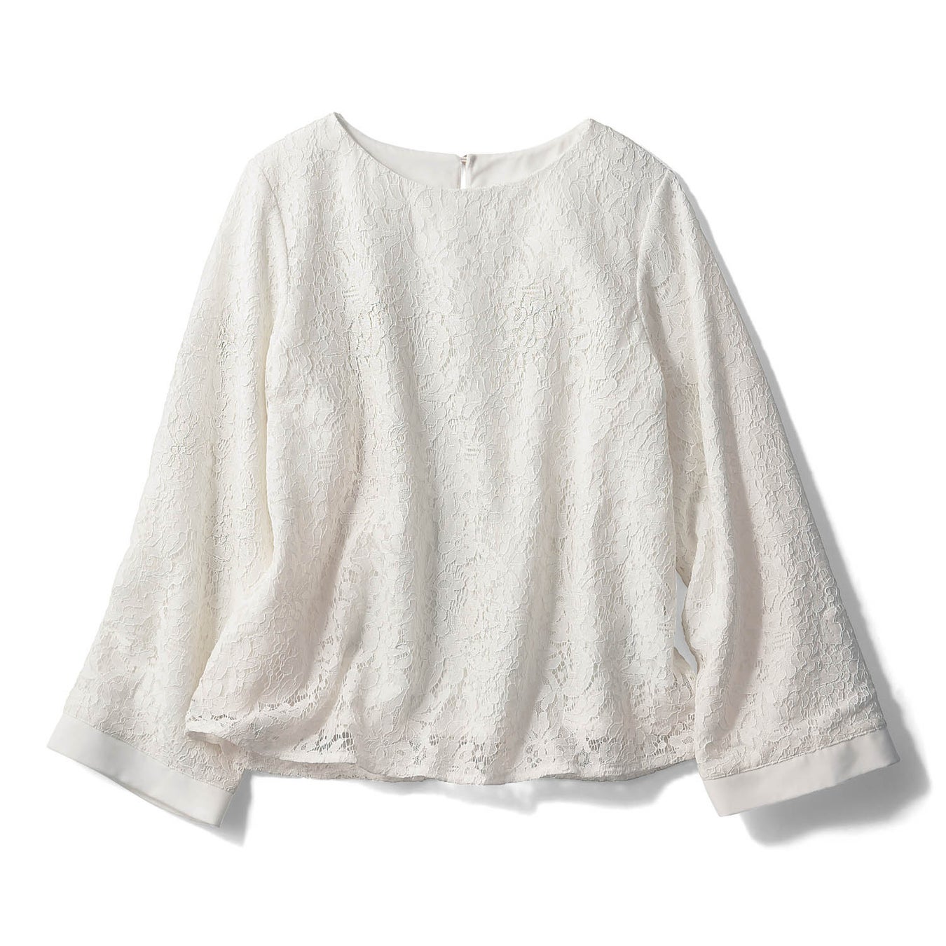 表地は上質な華やかさを演出するレースを使用。また、身頃から袖まではさらっとしたジョーゼット素材の裏地付きで透けにくく、安心して着ていただけます。