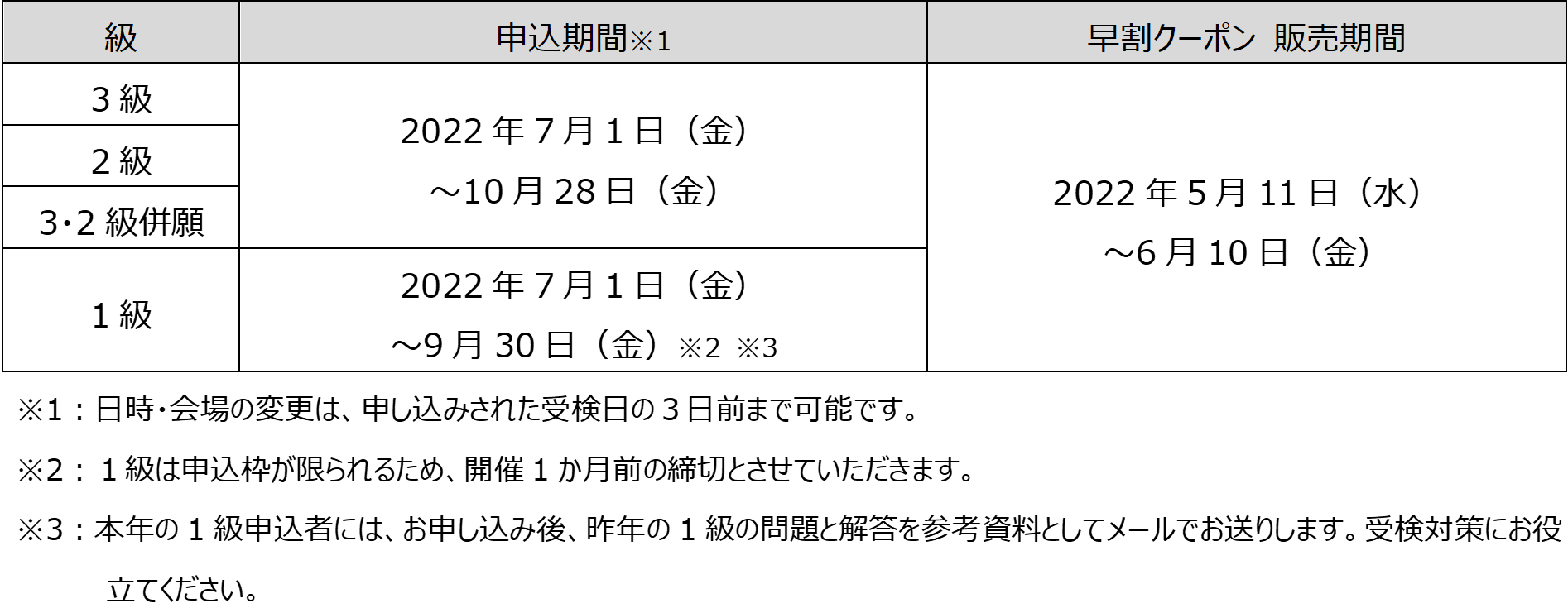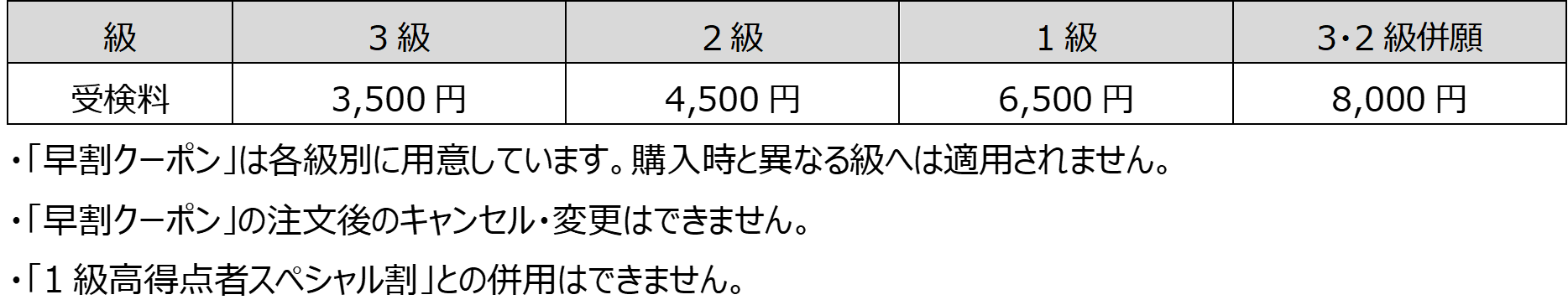 申し込みに先立ち、早割クーポンを販売します。詳細は「9.受検料」の項目をご覧ください。