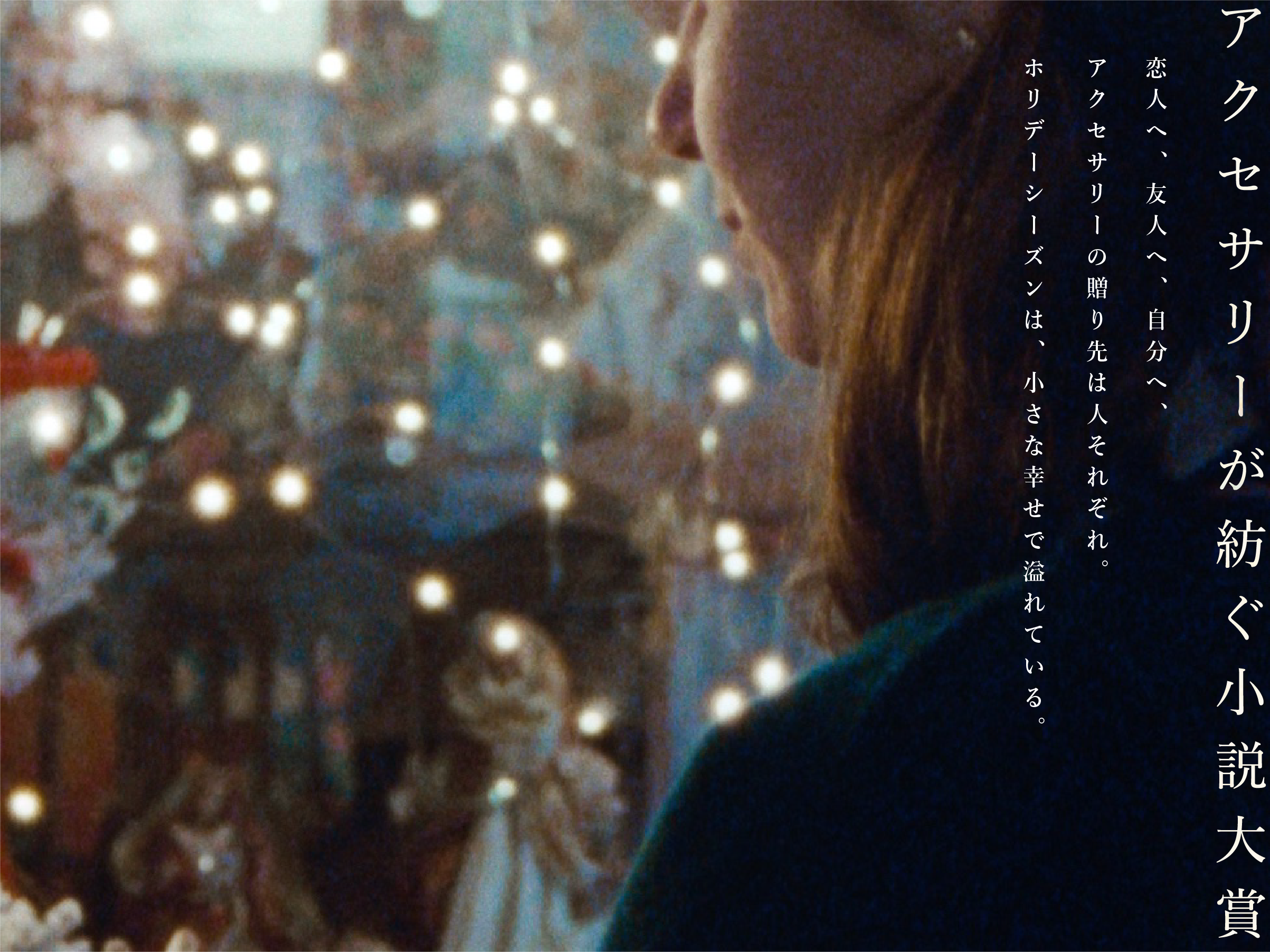 11月頃から年末にかけて、クリスマスを中心とした時期が「ホリデーシーズン」と呼ばれています。恋人、友人、自分…アクセサリーの贈り先は人ぞれぞれですが、小さな幸せがたくさん溢れる「ホリデーシーズン」の小説をお待ちしています。