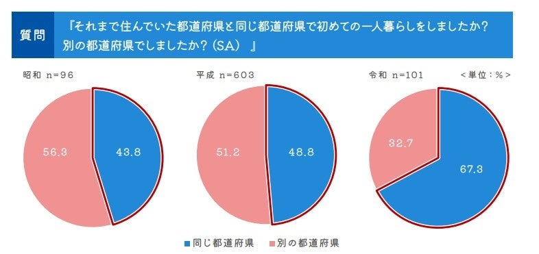 昭和・平成よりも令和のほうが同じ都道府県内で一人暮らしを始める人が多い傾向に