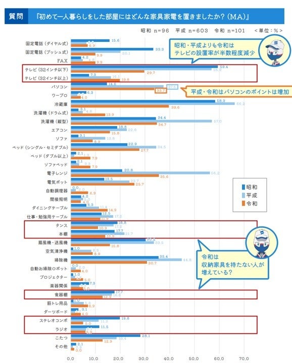 昭和・平成・令和、各時代に一人暮らしを始めた800人にアンケート調査!!