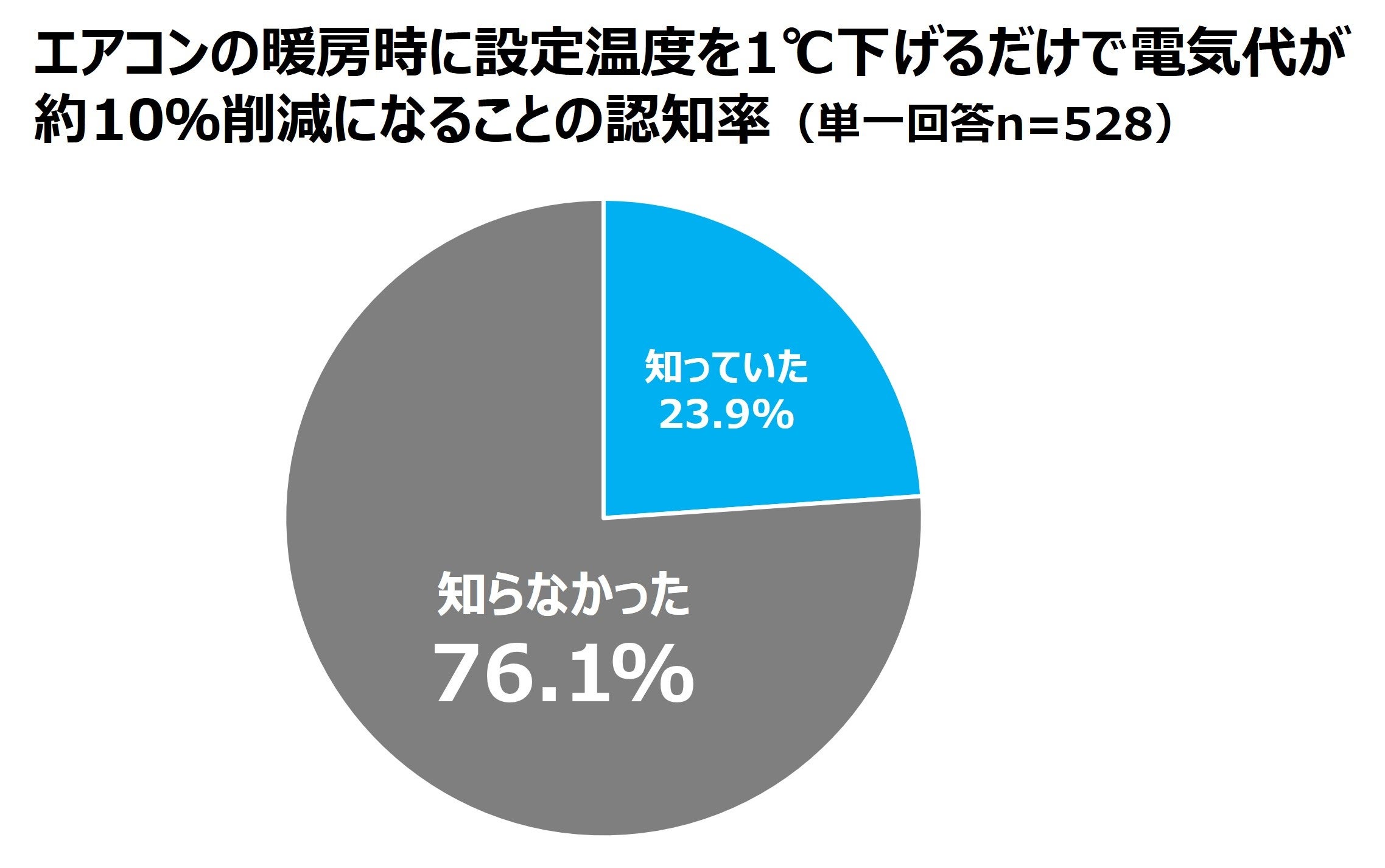 約8割の人が「冬のエアコンの設定温度を1℃下げると約10%の節電になる」ことを知らない