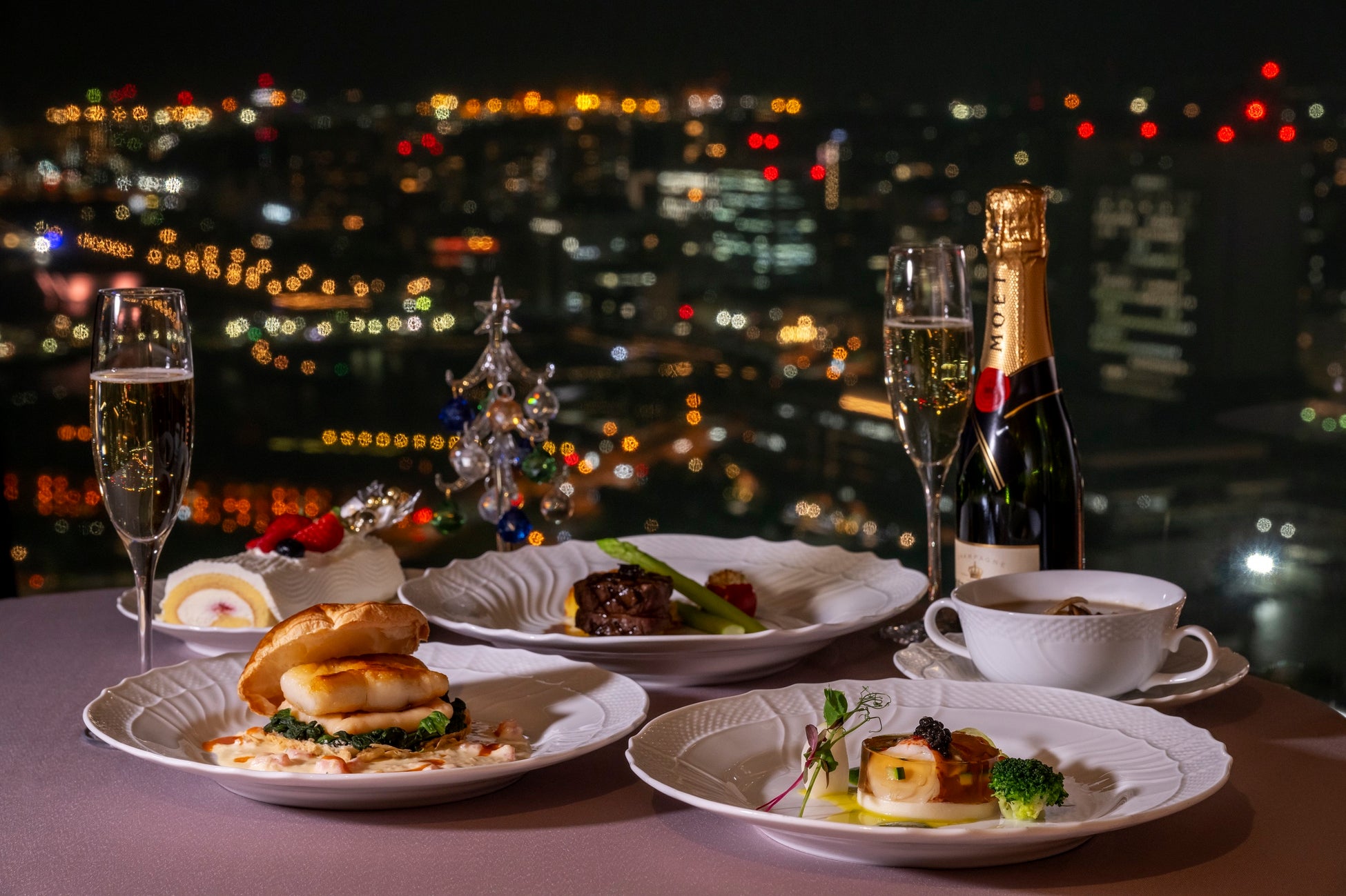 客室の窓外に広がる宝石のように輝く夜景を眺めながら過ごす、一年でこの時期だけの特別なステイをお楽しみください。