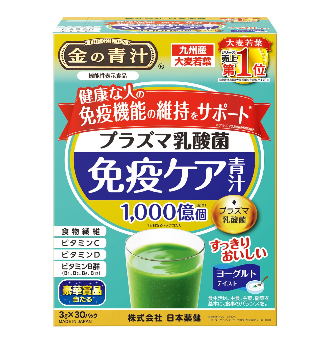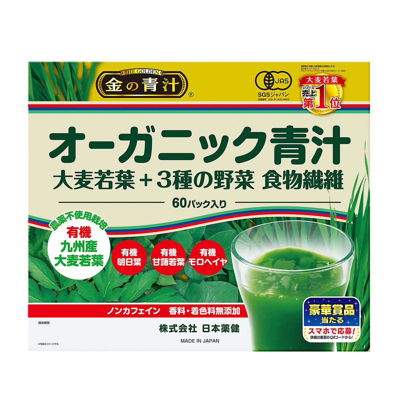 株式会社日本薬健(本社:東京都港区新橋二丁目20番15号、代表取締役:丸山 忠生)は、「金の青汁」ブランドより、九州産の有機大麦若葉をはじめ、 3種の有機野菜(有機明日葉・有機甘藷若葉・有機モロヘイヤ)を配合した、有機JAS認証取得の有機青汁を、2025年11月14日(金)よりAmazonで発売中です。
