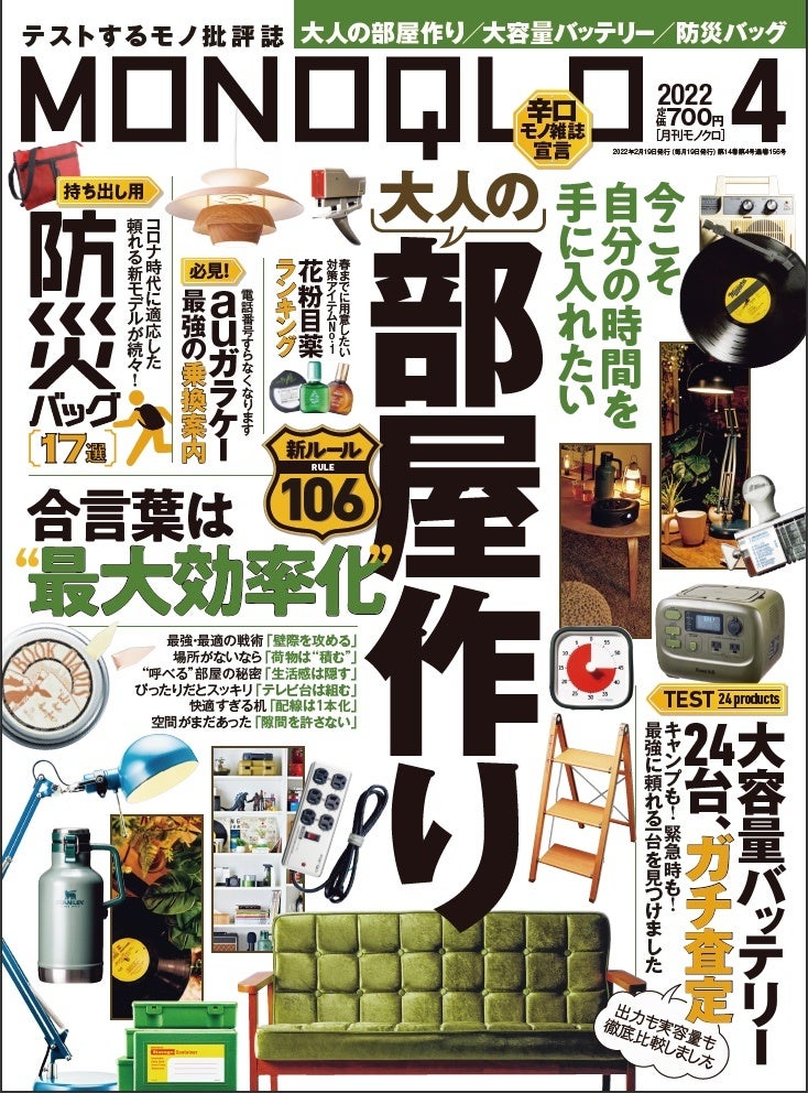 テストするモノ批評誌『MONOQLO』2022年4月号(2月19日発売)