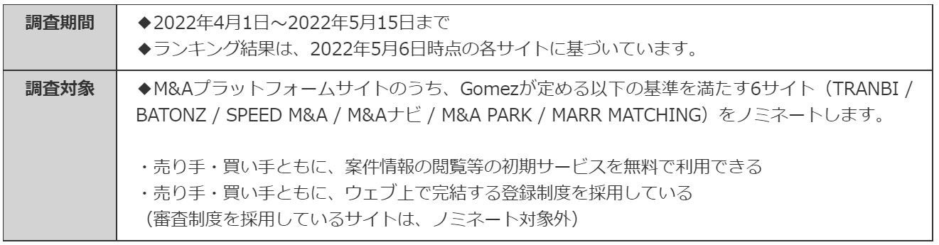 「Gomez M&Aプラットフォームサイトランキング2022」の発表について
