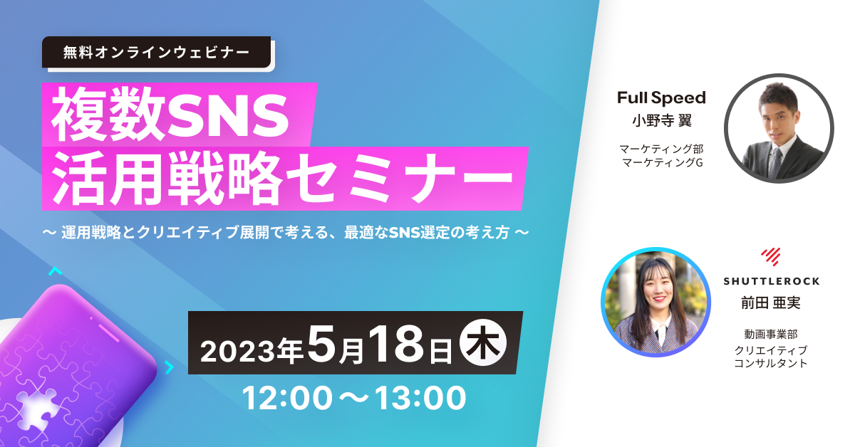 シャトルロックジャパン株式会社は5月18日(木)12:00より、株式会社フルスピードとの2社共催でSNSの企業活用における複数SNSの活用戦略設計をテーマに、オンラインセミナーを開催することをお知らせいたします。