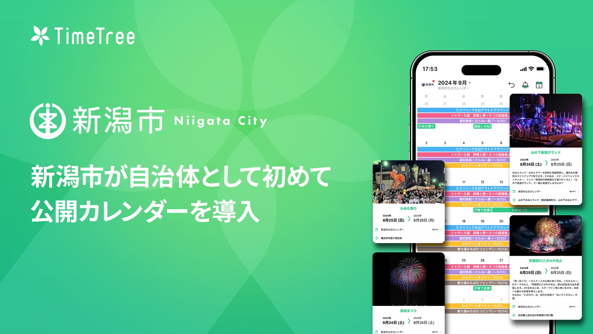 カレンダーシェアアプリ「TimeTree」(タイムツリー)を運営する株式会社TimeTree(本社:東京都新宿区、代表取締役社長:深川 泰斗)は、自社で運営するイベント情報プラットフォーム「公開カレンダー」を、新潟市が自治体として初めて導入したことをお知らせいたします。