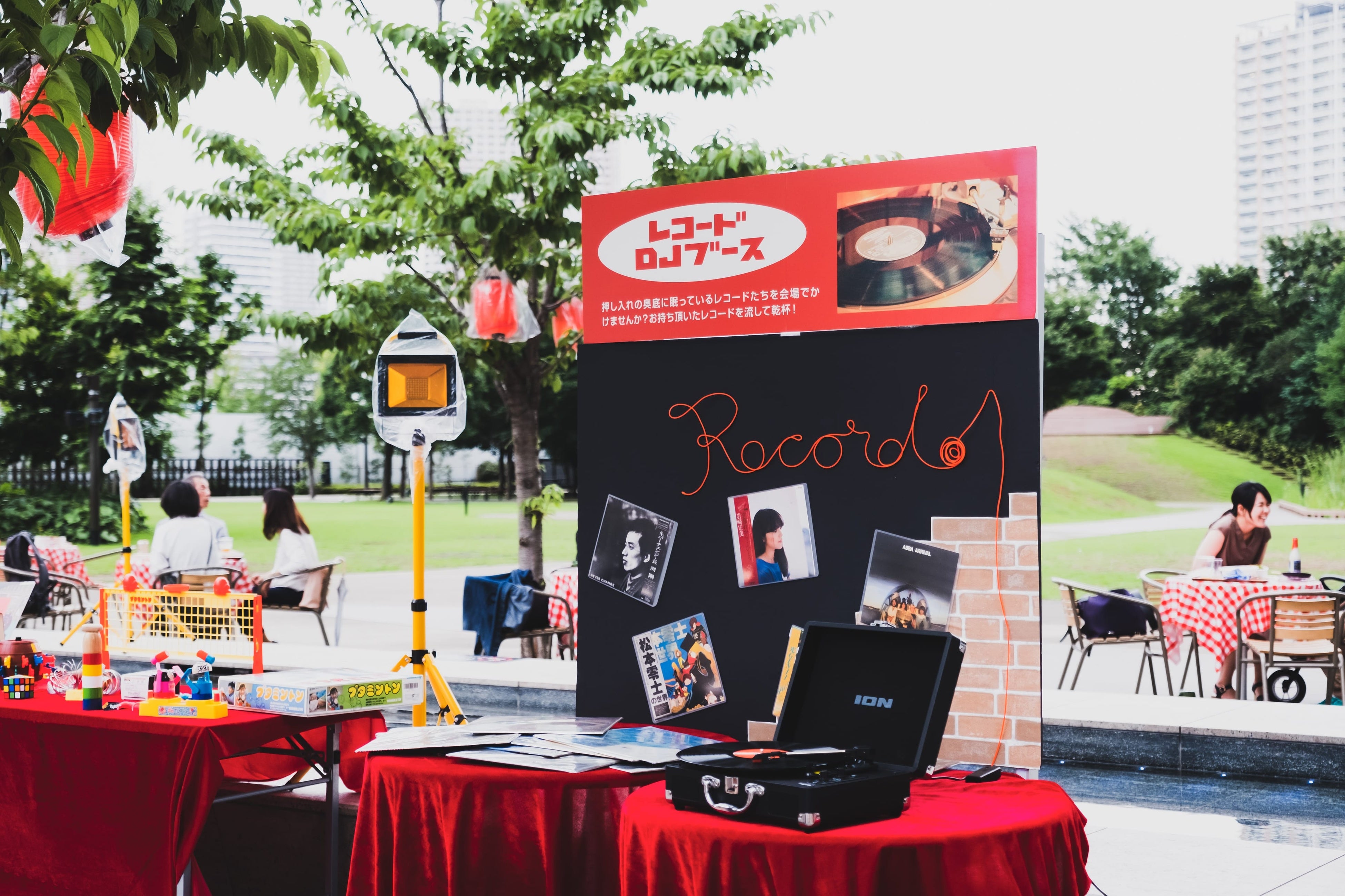 会場にはアナログレコードプレーヤーが登場。自宅から持参したレコードをかけるもよし、会場のレコードをかけるもよし。昭和のヒット曲や思い出のあの曲をレコードで楽しめます。