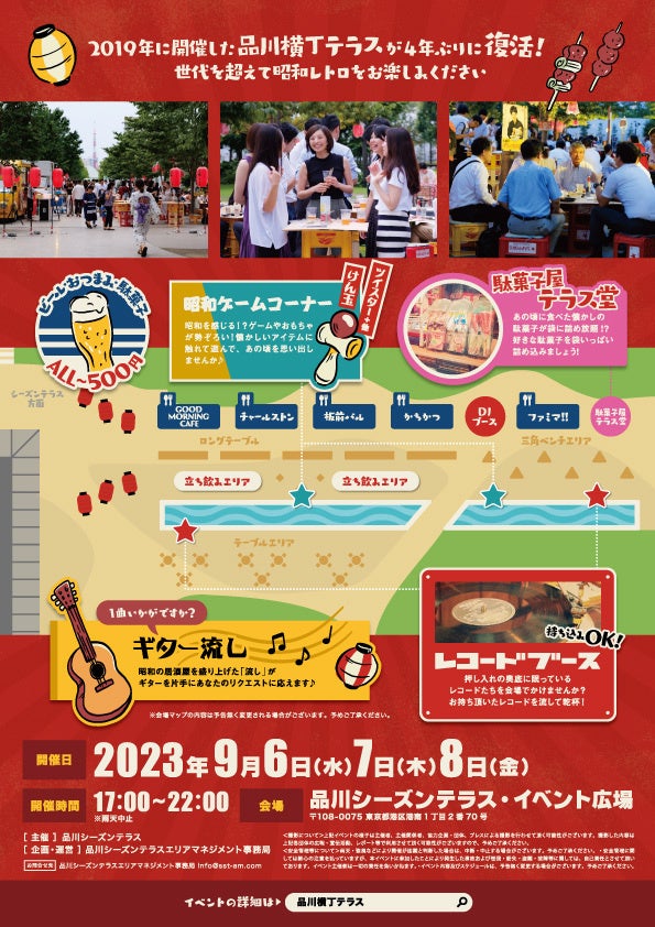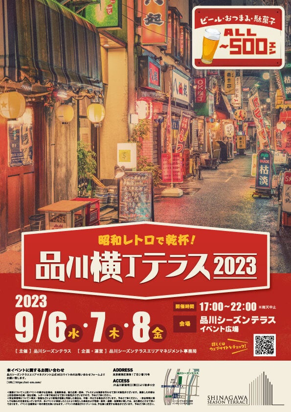 品川のオフィスビルのど真ん中に、昭和レトロな「横丁」が登場!「品川横丁テラス2023」9/6(水)~8(金) 開催