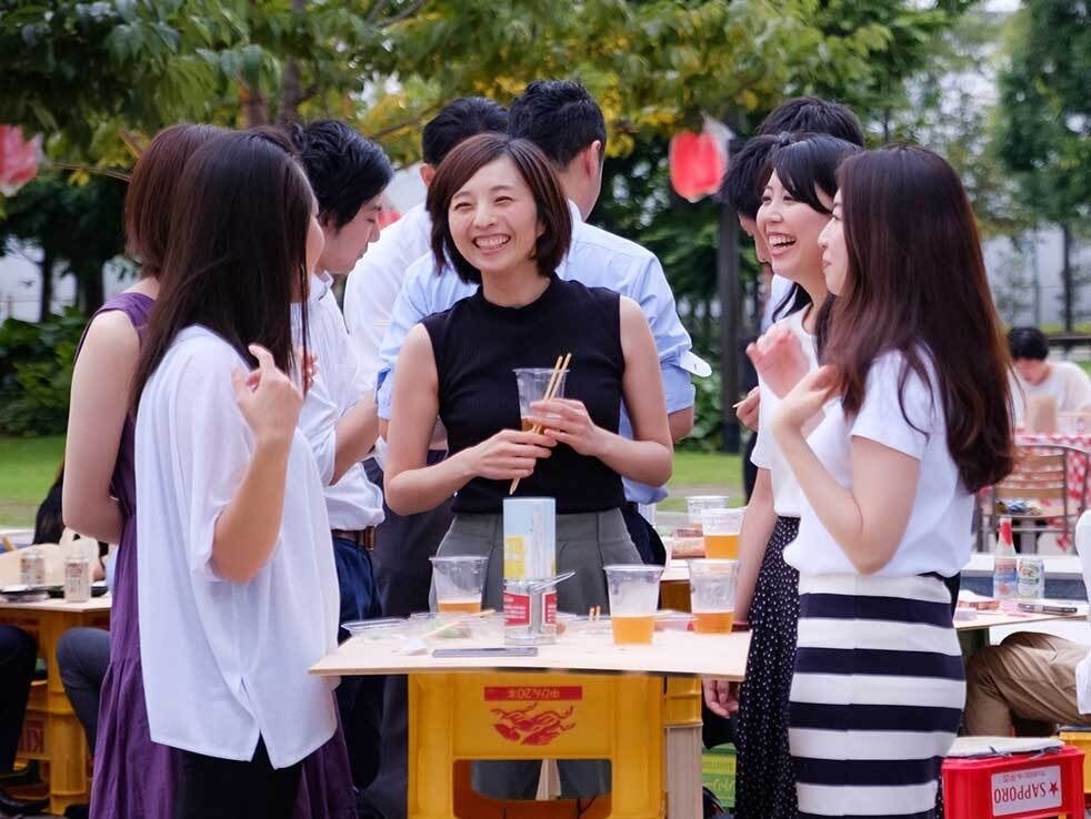コロナ禍でリモートワークなどの働き方改革が進む一方、「気軽に社員と話せない」「社内交流が減った」など、コミュニケーション不足による課題も増えました。そこで「品川横丁テラス」では、仕事帰りにふらっと立ち寄り、同じ会社/同じエリアで働くワーカー同士が気軽にコミュニケーションを楽しめる場を目指しました。都心の空の下、賑やかでどこか温かみある昭和の「横丁」で、世代や会社を超えて乾杯しましょう!
