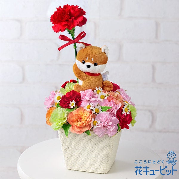 毎年人気の花キューピット限定マスコット付きアレンジメントに、2024年は新たに犬がラインナップしました。