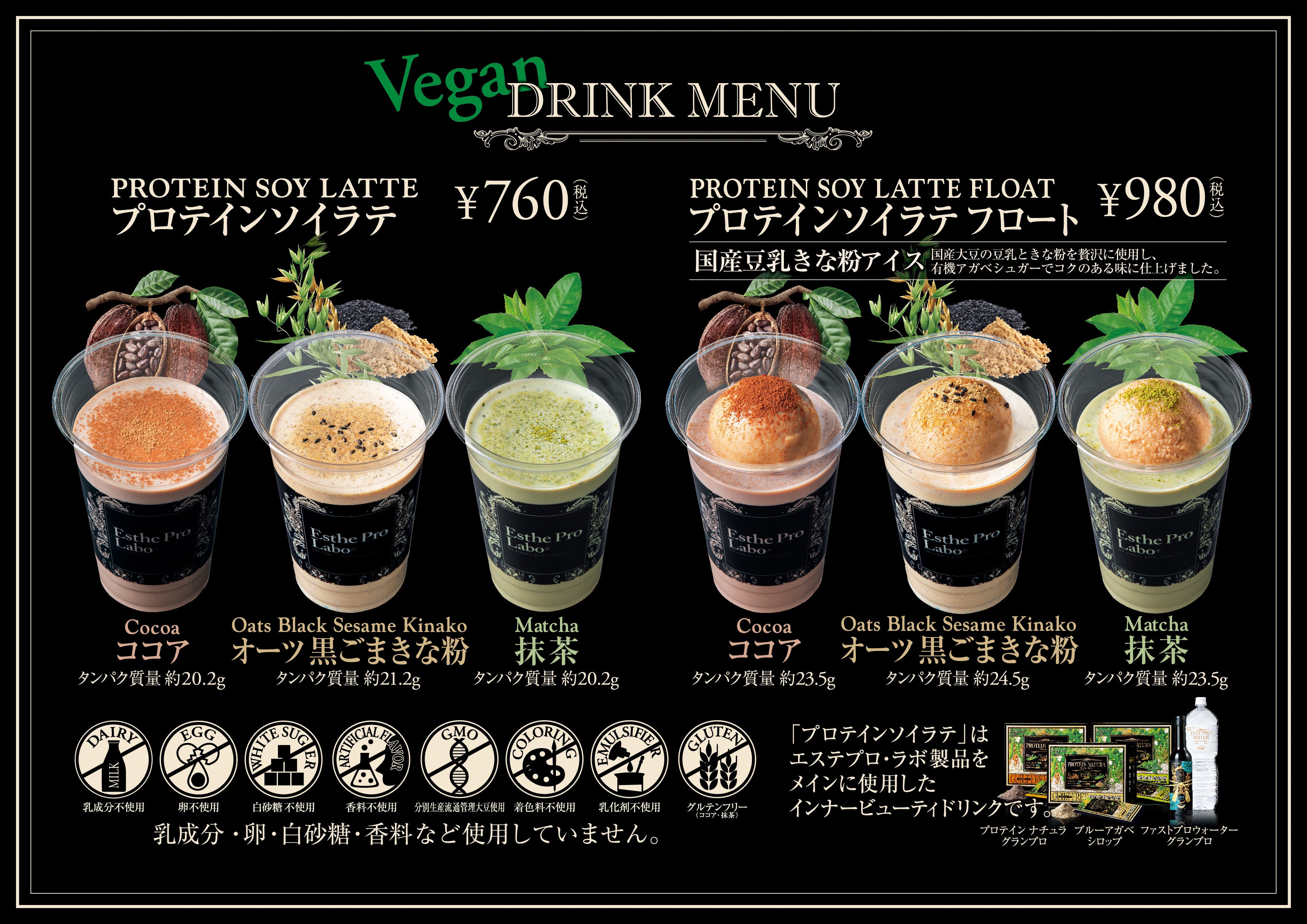 当サロンでは管理栄養士監修 ヴィーガン対応の無添加※1「プロテインソイラテ」・「プロテインソイラテ フロート」の限定ドリンクも新発売いたします。