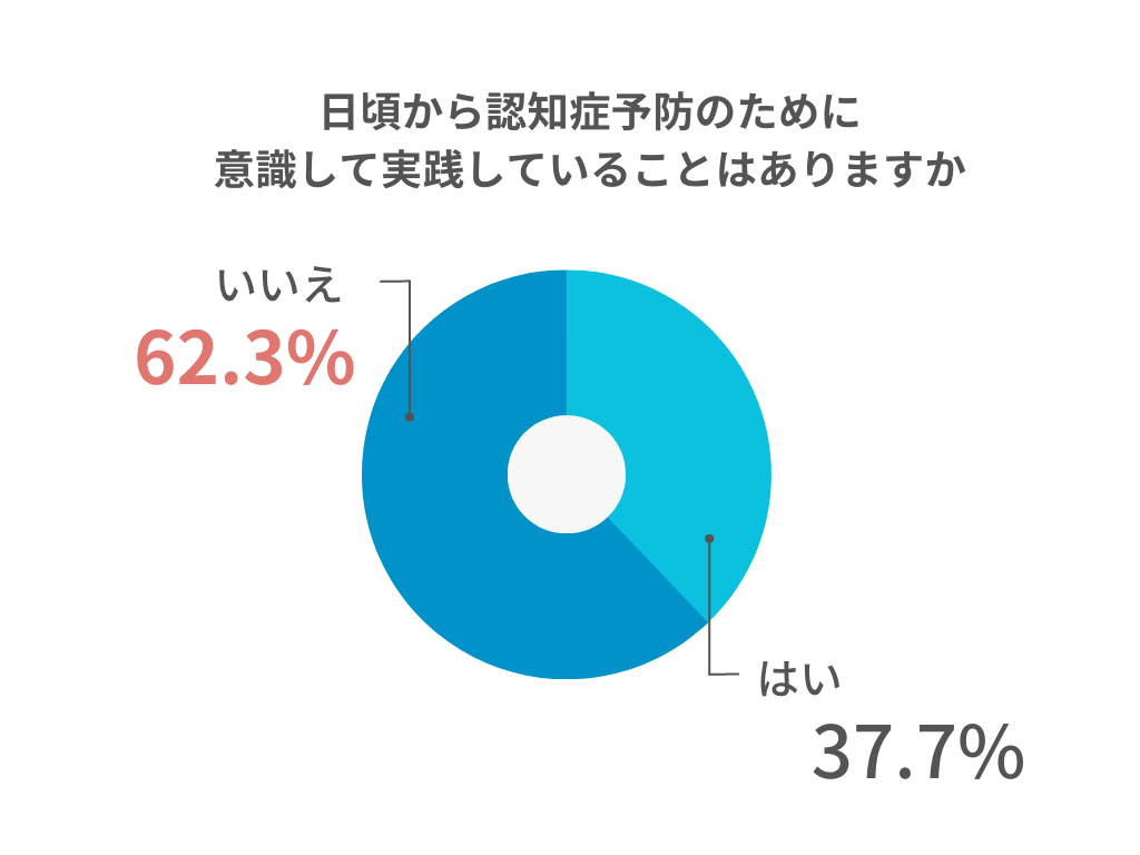 認知症予防のために実践していることはありますかという問いに対して、実施していると回答したシニアは37.7%という結果になりました。