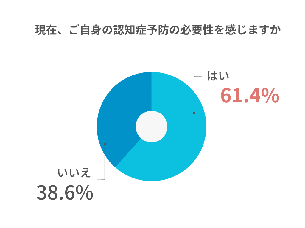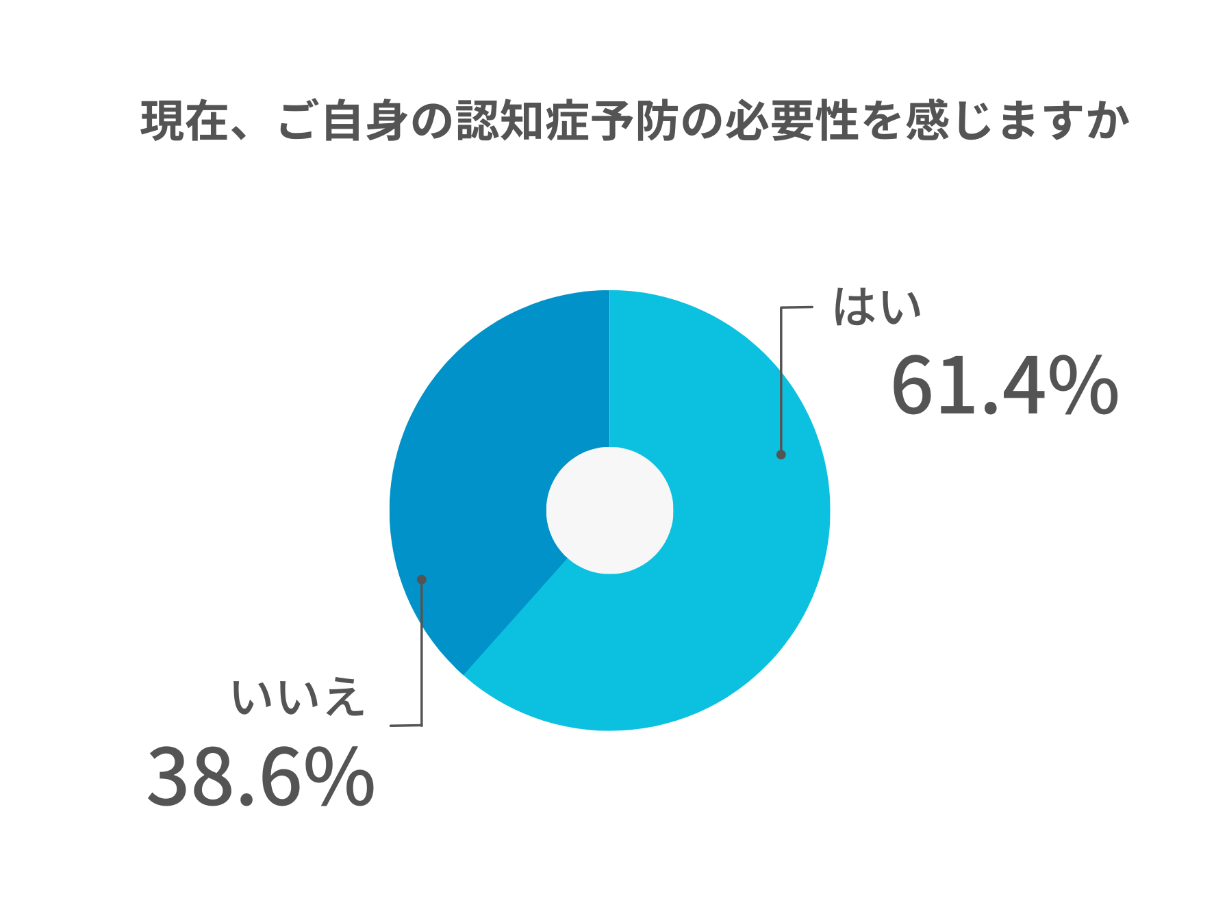 まず、参加者に現在の認知症予防の必要性を尋ねたところ、61.4%の方が「はい」と回答し、38.6%の方が「いいえ」と回答しました。