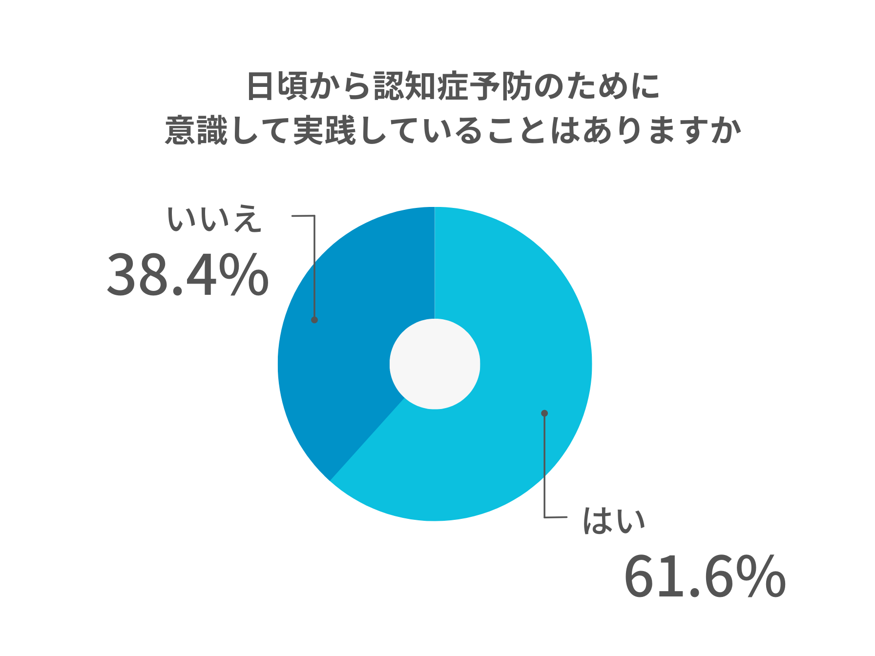 日頃から認知症予防のために意識して実践していることはありますかという質問に対して、62%が行なっていないと回答。