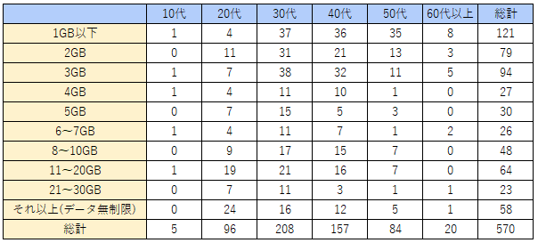 とくに50代〜60代以上の方は全体の約7〜8割が3GB以下に収まっているという結果になっています。