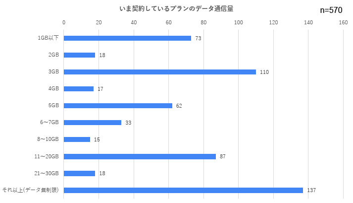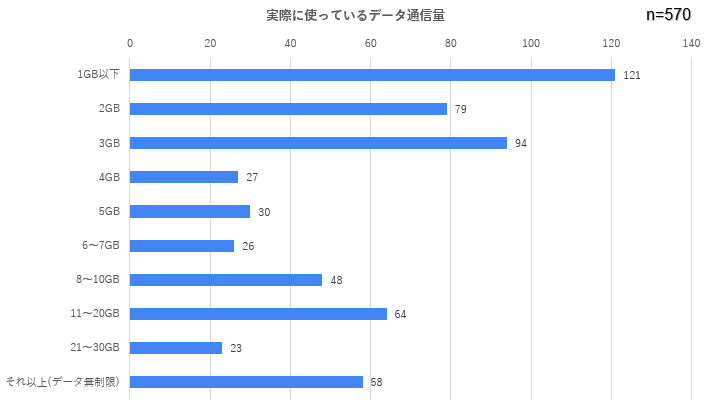 契約しているプランではデータ無制限が最も多いという回答になりましたが、実際のデータ使用量とは大きなギャップがあります。