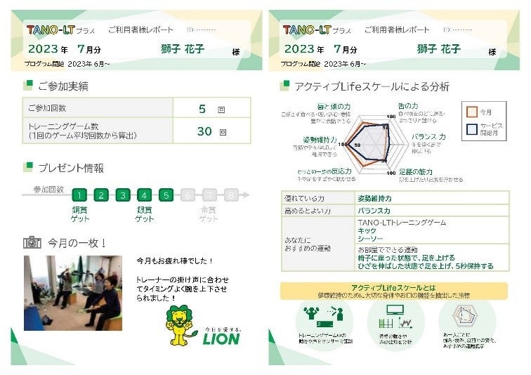 感覚で、画面の動きに合わせて体を動かすことで機能訓練につながる運動ができるほか、ゲーム中にデータを自動取得し、パーソナライズされた測定レポートを作成することができます。パーソナルレポートでは、6つの指標から成る「アクティブLifeスケール」を用い、健康的な生活に必要な機能を評価します。