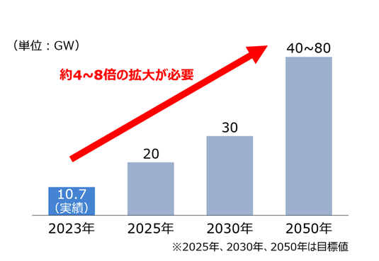 台湾は製造業が盛んであるため、一人当たりの電気使用量は日本の1.6倍超と多く、また火力発電への依存度が高い市場です。2017年に電業法(日本の電気事業法に相当)が改正され、台湾政府としては2025年までに再生エネルギーが総発電電力量に占める割合を20%まで高めるべく、太陽光発電容量の導入目標を20GWと設定しました。更に、2022年3月に国家発展委員会は2050年までのカーボンニュートラル実現に向け、太陽光発電容量を2030年までに30GW、2050年までに40GW~80GWに拡大するという長期目標を設定しました。しかしながら、2023年までの太陽光発電の導入実績は10.72GWであり、2025年までの目標達成率は約5割程度に留まっています。目標達成に向け、今後は同実績を倍増させる必要があることから、引き続き台湾においてはメガソーラー開発事業に対する旺盛な資金需要が見込まれます。