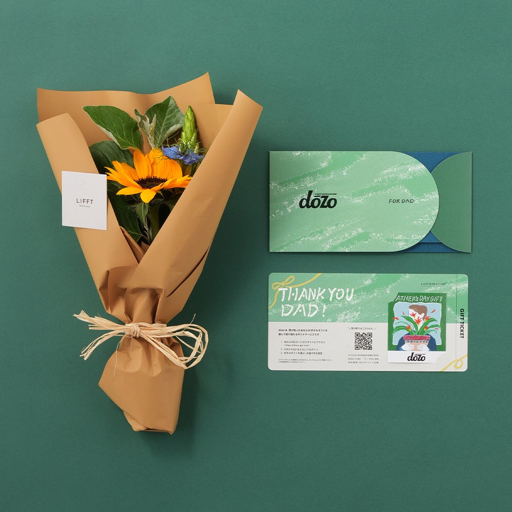 「ギフトチケット&ブーケセット」でお届けするブーケは、オンラインで展開するフローリスト《LIFFT》にてご用意。《LIFFT》ならではのセンスの良いアレンジでお届けします。