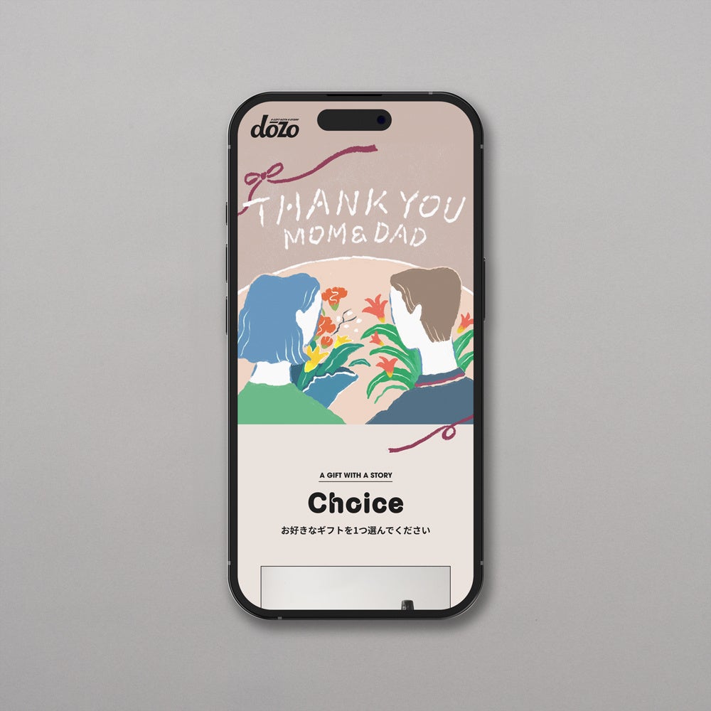 母の日と父の日をいっしょに贈る「ペアギフト」はまだ一般的ではありませんが、dōzoならではの新しい贈り方の提案として、この度はじめて商品化しました。今年は「夫婦ふたりが一緒に選ぶギフト」を通して、家族の楽しいコミュニケーションが生まれることを願っています。