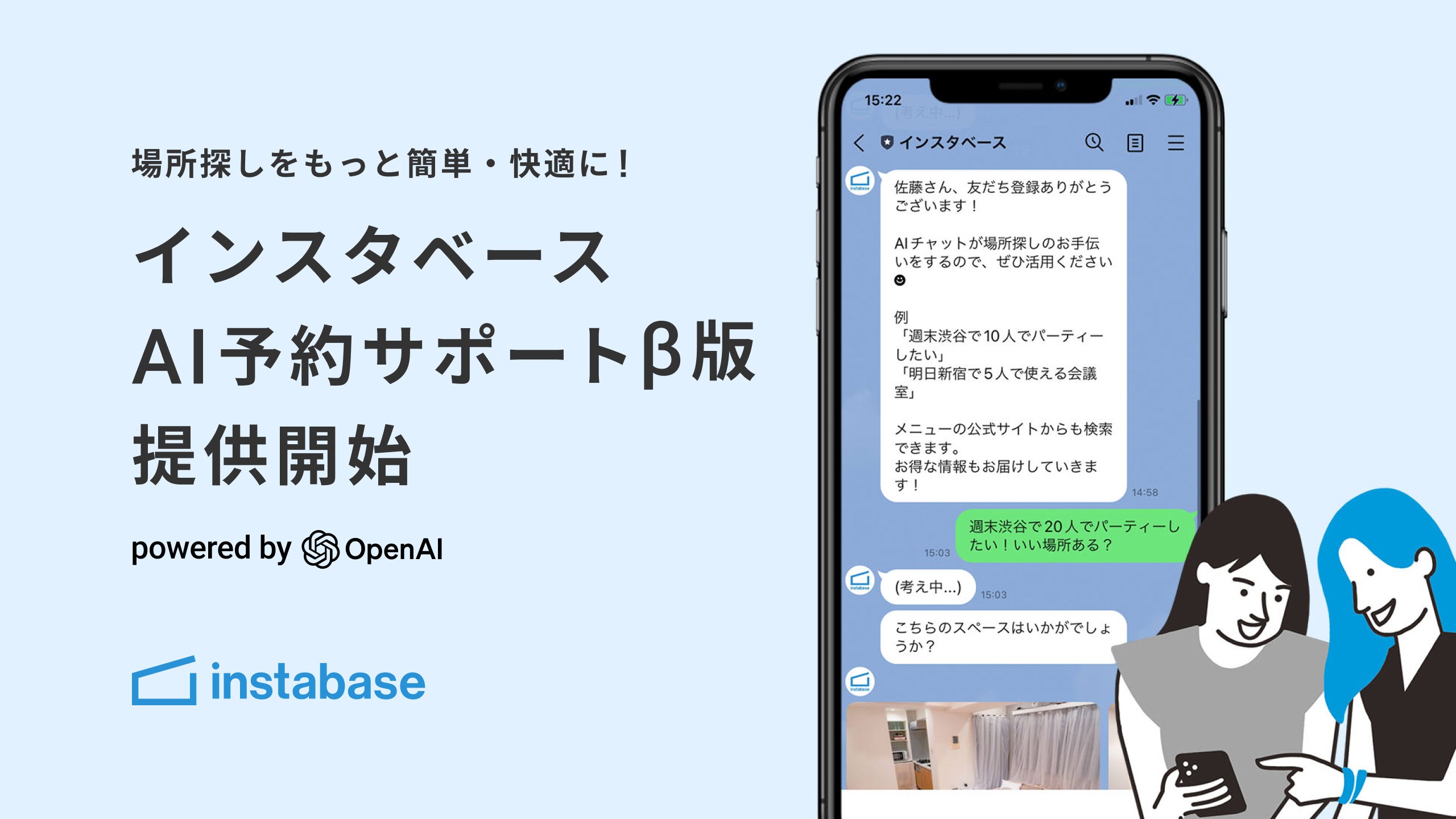 新しいChatGPTの技術を活用し、場所探しをもっと簡単・快適に!「インスタベースAI予約サポート β版」の提供を開始
