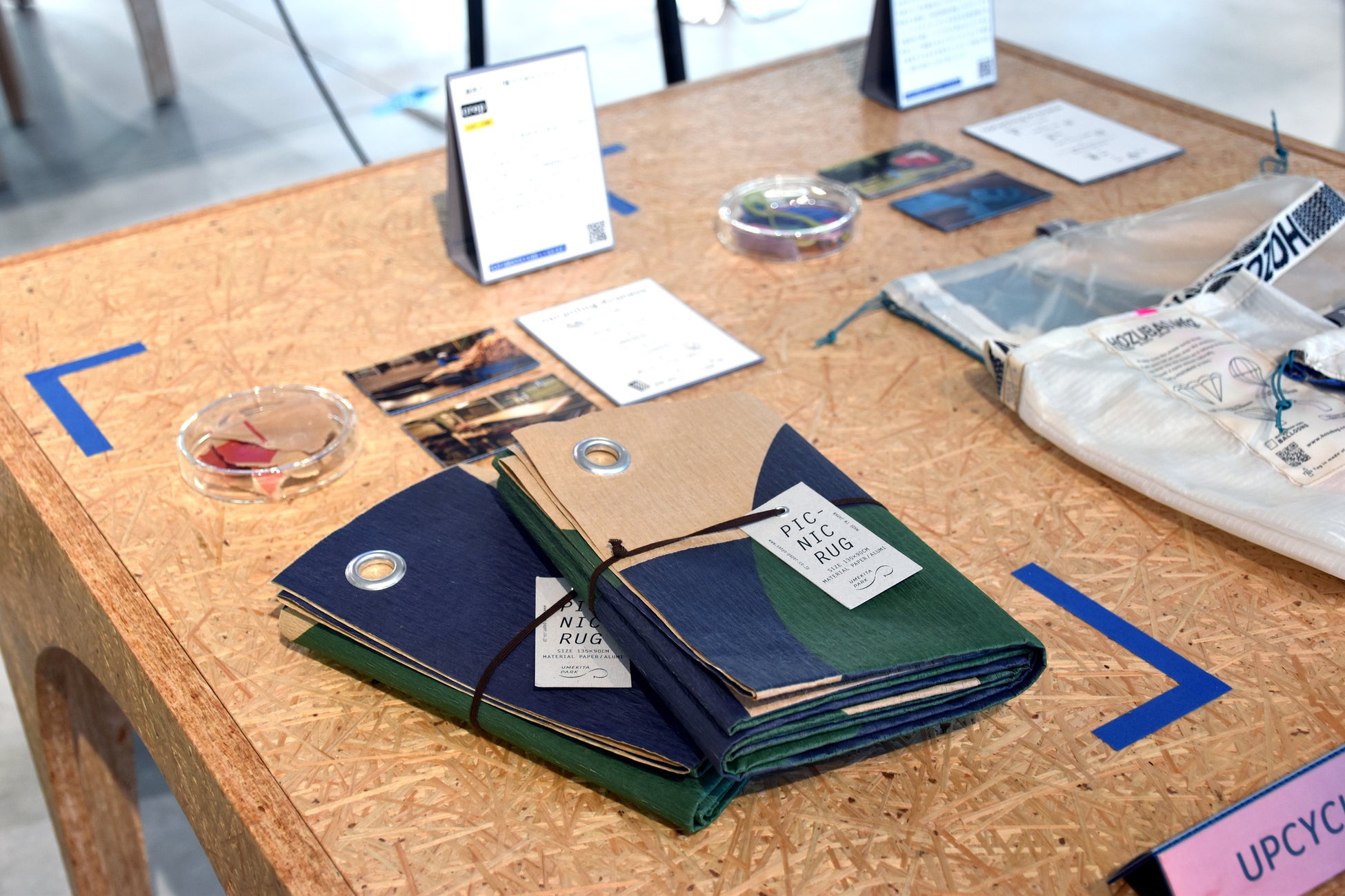 アップサイクルで廃棄物削減に取り組むプロダクトを展示