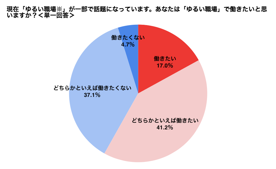 - ゆるい職場で「働きたくない」理由としては、「期待や指導をされて成長したい」「少しでも早く周りに追いつきたい」「危機感」などと回答。