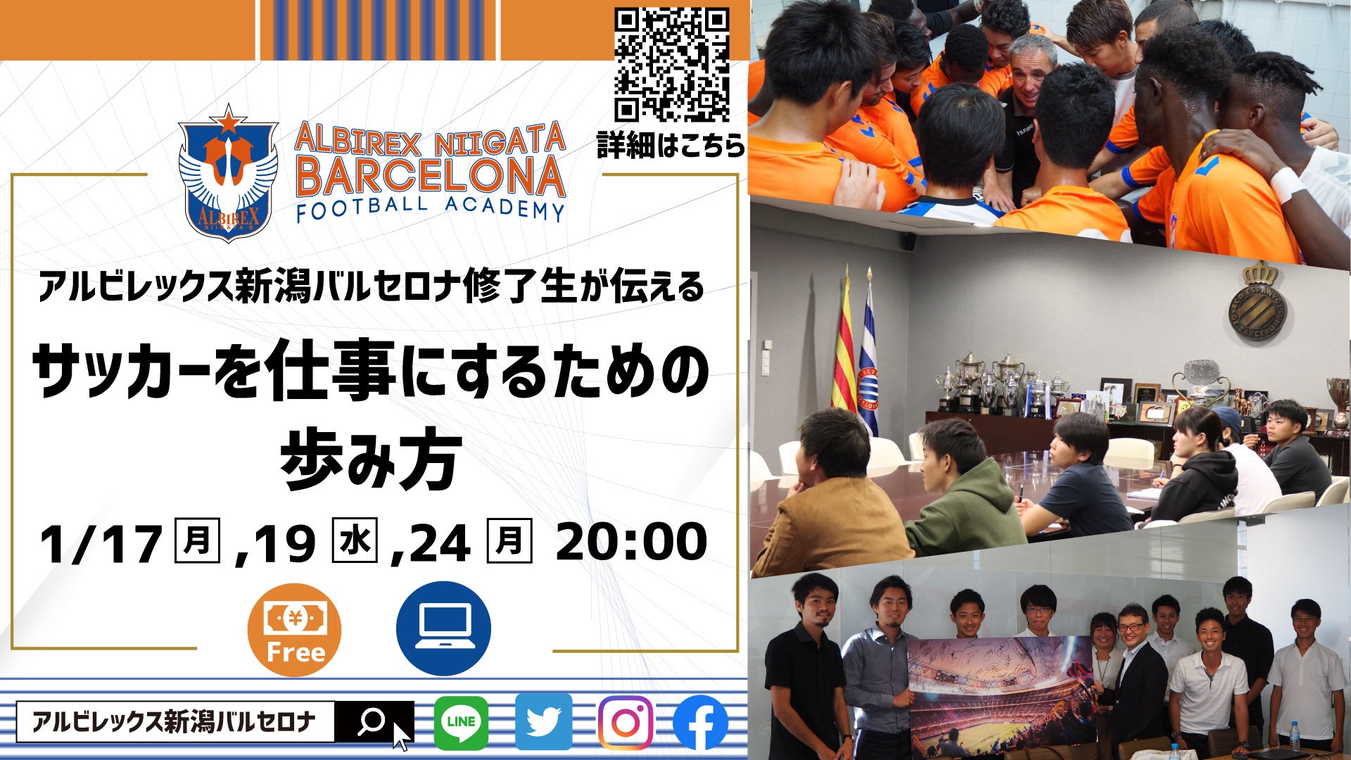 アルビレックス新潟バルセロナ フットボールアカデミーでは、【アルビレックス新潟バルセロナ修了生が伝える『サッカーを仕事にするための歩み方』】を開催いたします。