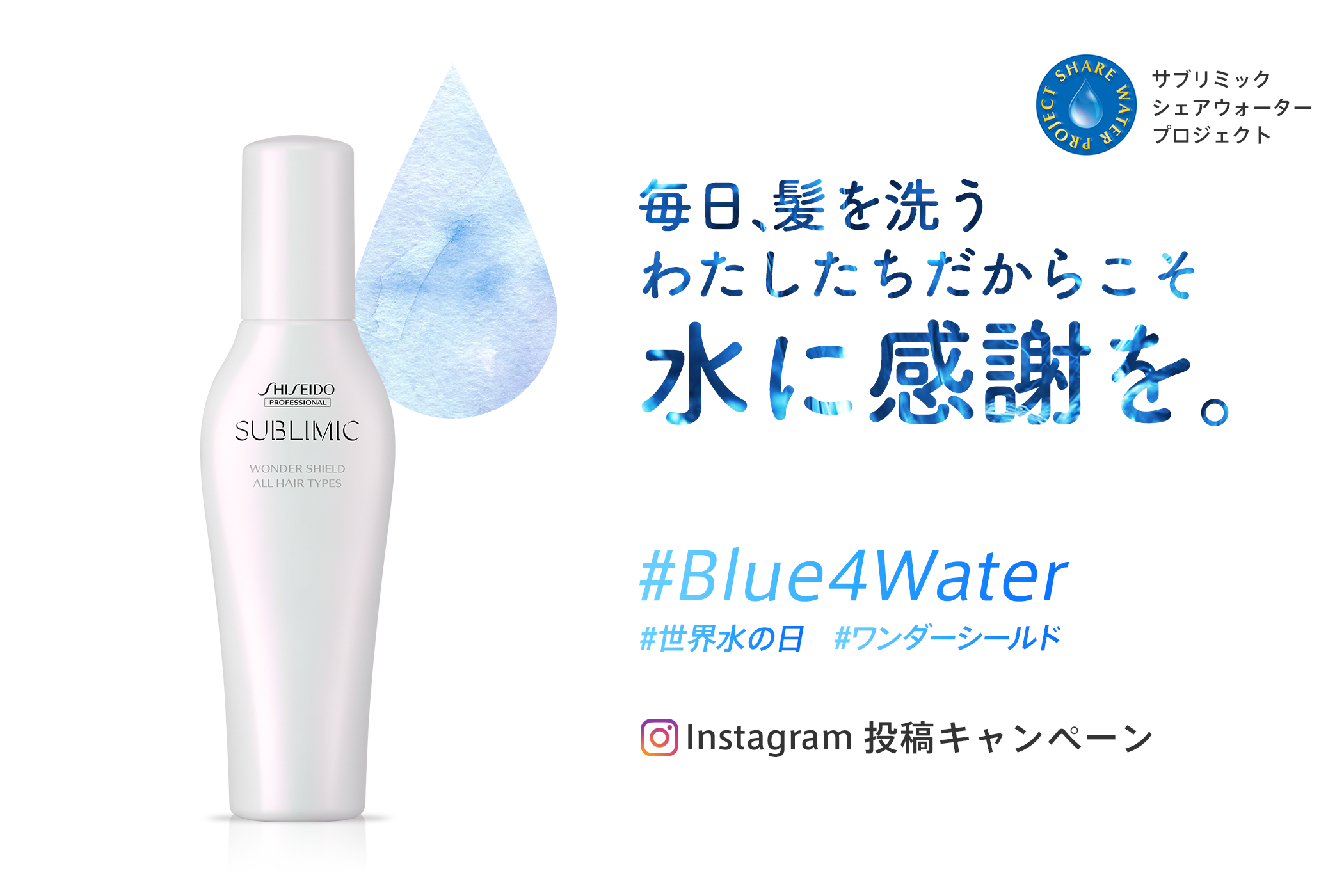 3月22日は「世界水の日」!サブリミック シェア ウォータープロジェクトにてインスタグラム投稿キャンペーン「#Blue4Water」を開催!