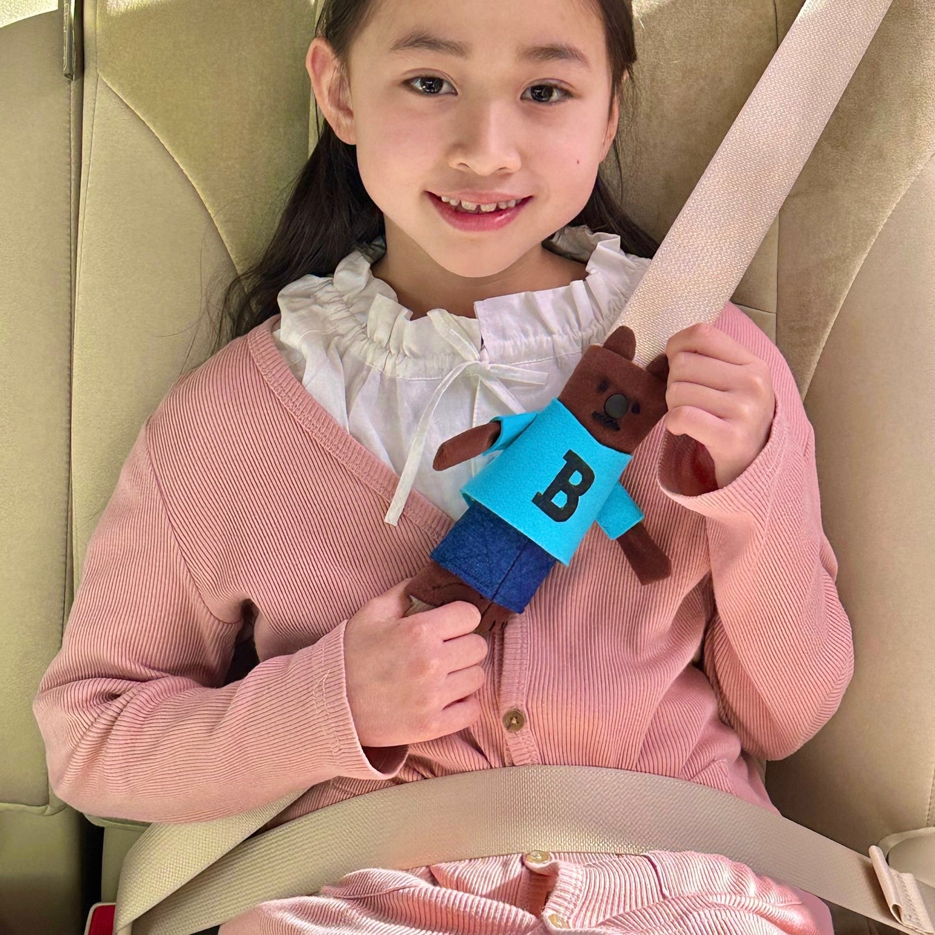 我が家の子供たちが、実際に楽しんでシートベルトをつけてくれそうなアイデアを考えました。シートベルトを着けた時にだけ遊べるおもちゃです。車で移動中の子供たちはいつも暇になってしまうので、道中でいろいろと着せ替えて楽しんでほしいなと思います。出発した時はパンツ一丁のクマちゃん、目的地に着いた時はどんなファッションになっているかな?